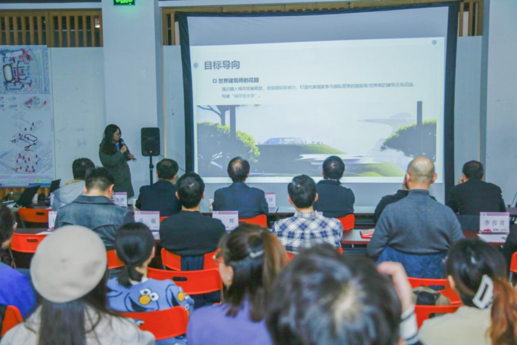 评图仪式由常务副经理金秋野教授主持,并介绍了参会嘉宾与工作营组织情况。党委书记姜泽廷为评图活动开幕仪式致辞,并为领衔指导教师和七校指导教师颁发了聘书。随后,四组工作营同学依次汇报了主题为“园· 院”、“云上中心CC+”、“创新校园:未来街区”、“叠·生”的城市设计方案,并得到了与会专家的肯定与精彩点评。各组作品通过不同视角梳理了上位规划、区位条件、城市肌理等现状,提出了极具个性化和差异化的设计理念和设计策略。各位评图专家针对设计方案研究结论与设计立意的统一性,设计理念贯彻执行的力度和精准度,设计手法与策略的丰富性等方面进行了精彩点评,提出了很好的建议。