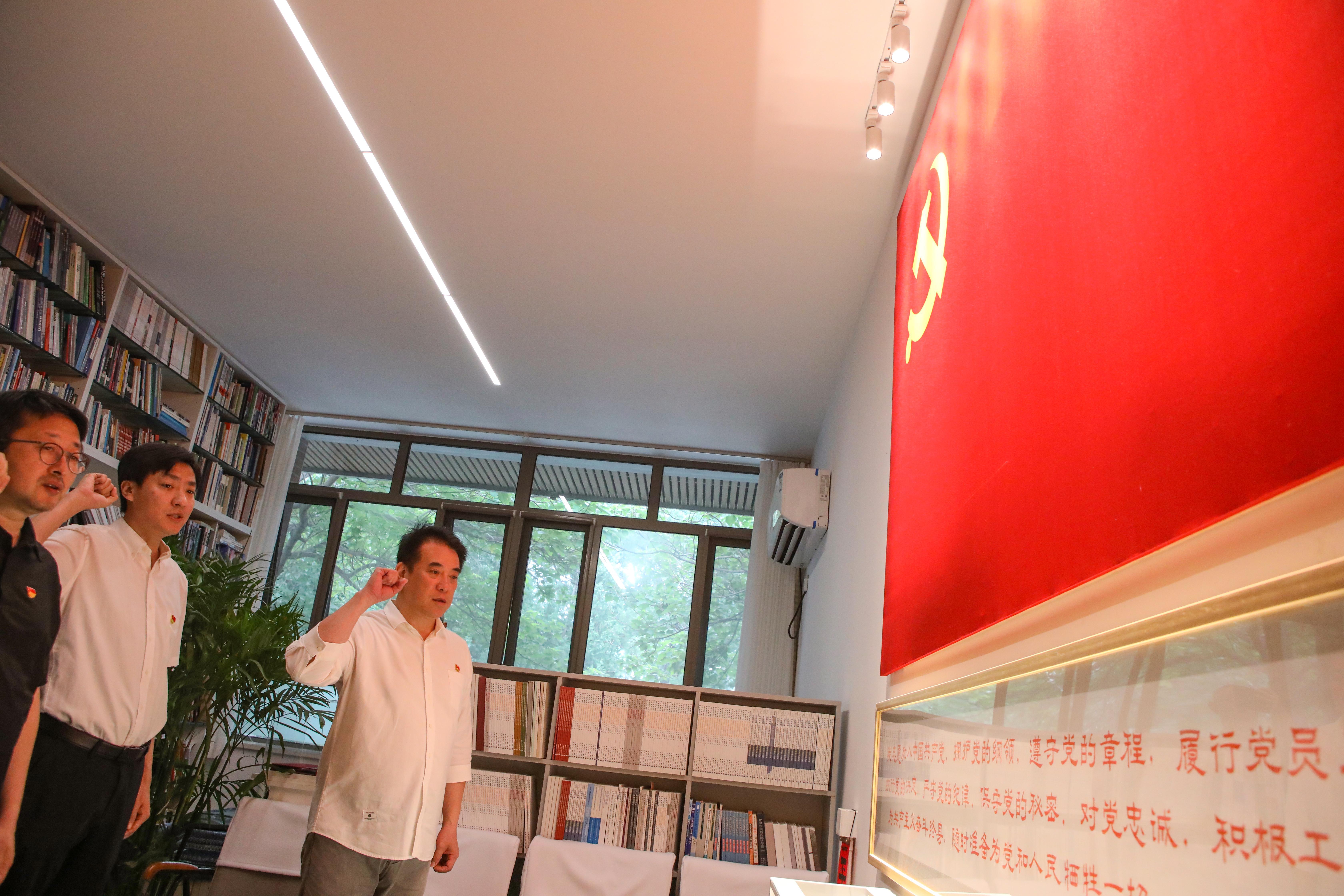何立新同志强调,今天是党的104岁生日,我们在这里重温入党誓词,希望同志们谨记党员干部的身份,时刻不忘“为中国人民谋幸福,为中华民族谋复兴”这一初心使命,用奋斗铸就信仰之光,在各自的岗位上发光发热,一起祝福我们伟大的党,祝福伟大的祖国。