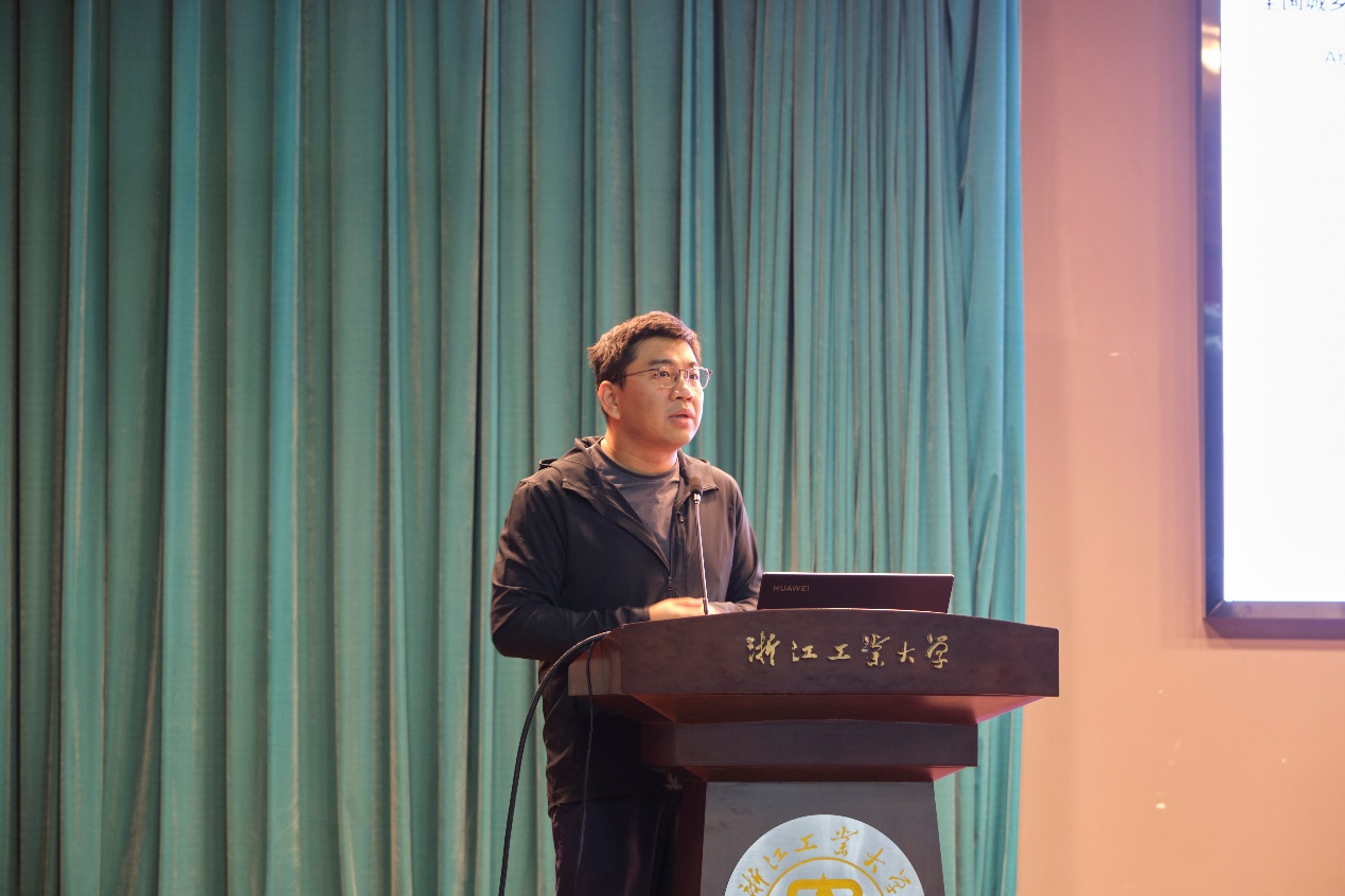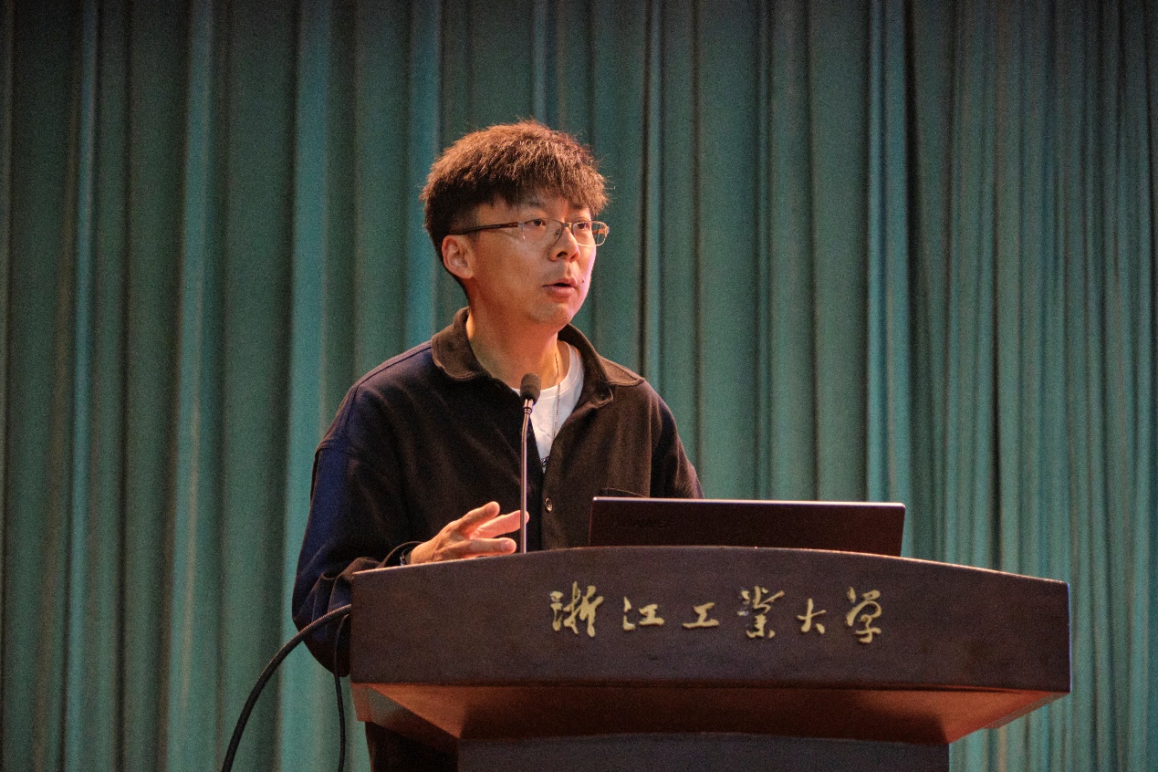 浙江工业大学设计与球盟会陈炜副经理致辞欢迎。陈经理希望同学们能在相互交流中增进了解,两个月后各位同学即将成为同行,甚至有可能成为同事,共同建设祖国,最后期待同学们能有出色的发挥。