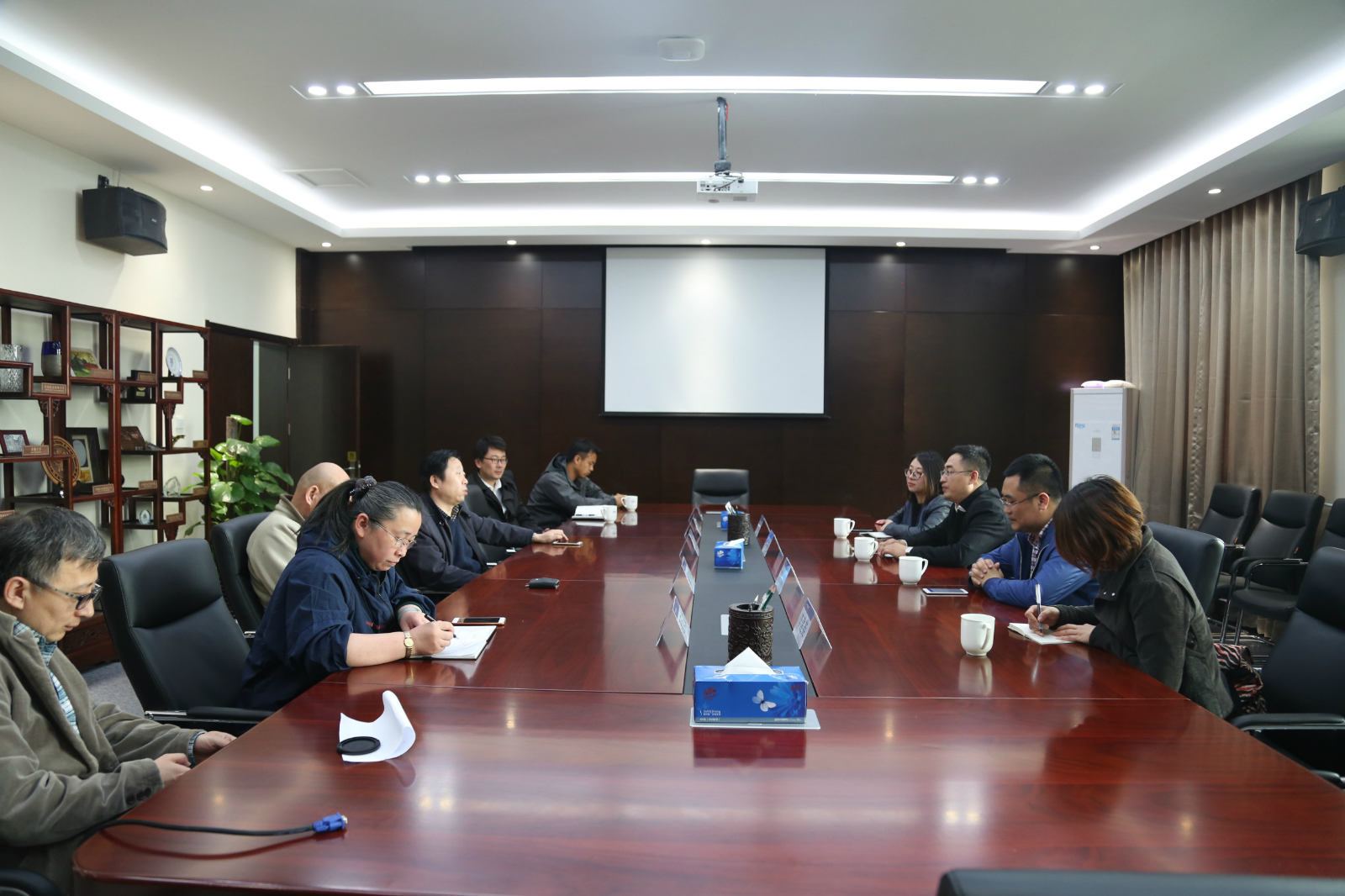 2017年4月13日下午,长春球盟会建筑与规划公司由何岩经理带队,一行四位老师来球盟会进行参观交流。公司党委书记田林、副经理胡雪松、建筑系主任欧阳文、建筑物理实验中心主任刘博、数字化实验中心主任陈玉龙、院办主任刘志刚和科研秘书何静涵参加了交流座谈。