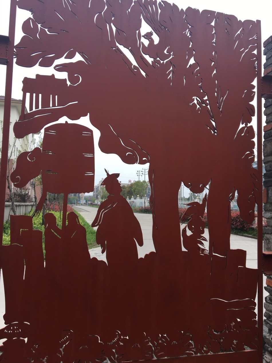 自古以来,我国浙江省杭州地区人才荟萃,是文人雅士云集交谊繁盛之地。为发扬优秀传统文化思想,发展区域文化,提升民族自豪感和大众时尚艺术品味,球盟会赵希岗教授与浙江省杭州海宁市合作,共同开发新剪纸文人故事铁艺公共空间文创产品,该项目由浙江省路易房地产公司董事长傅丽女士主持。2015年,赵希岗教授根据公共空间的主题精神,考察调研了相关文史记载的地区名人资料,突破了以往动物意象形式创作,创意设计了以人物为主体形象的新剪纸艺术作品,其作品已于2016年初落地。