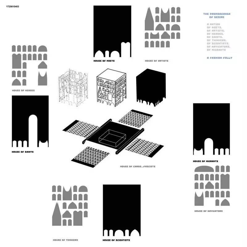 这次的竞赛主题为“Propaganda”,要求参赛者在自己的方案中讨论过去、现在以及未来的建筑在政治宣传中的角色,对其进行重新阐释、重新想象、重新定义。任务书中给了三份研究材料以及美国现实主义小说家Upton Sinclair的一句话:“All art is propaganda. It is universally and inescapably propaganda;sometimes unconsciously, but often deliberately, propaganda.”