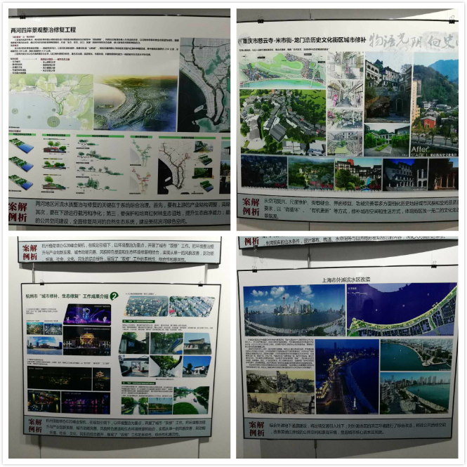 展览包括三亚市两河四岸景观整治修复工程、杭州市“城市修补、生态修复”工程、重庆市慈云寺-米市街-龙门浩历史文化街区城市修补工程、北京大栅栏历史街区改造项目、上海外滩滨水区改造等。