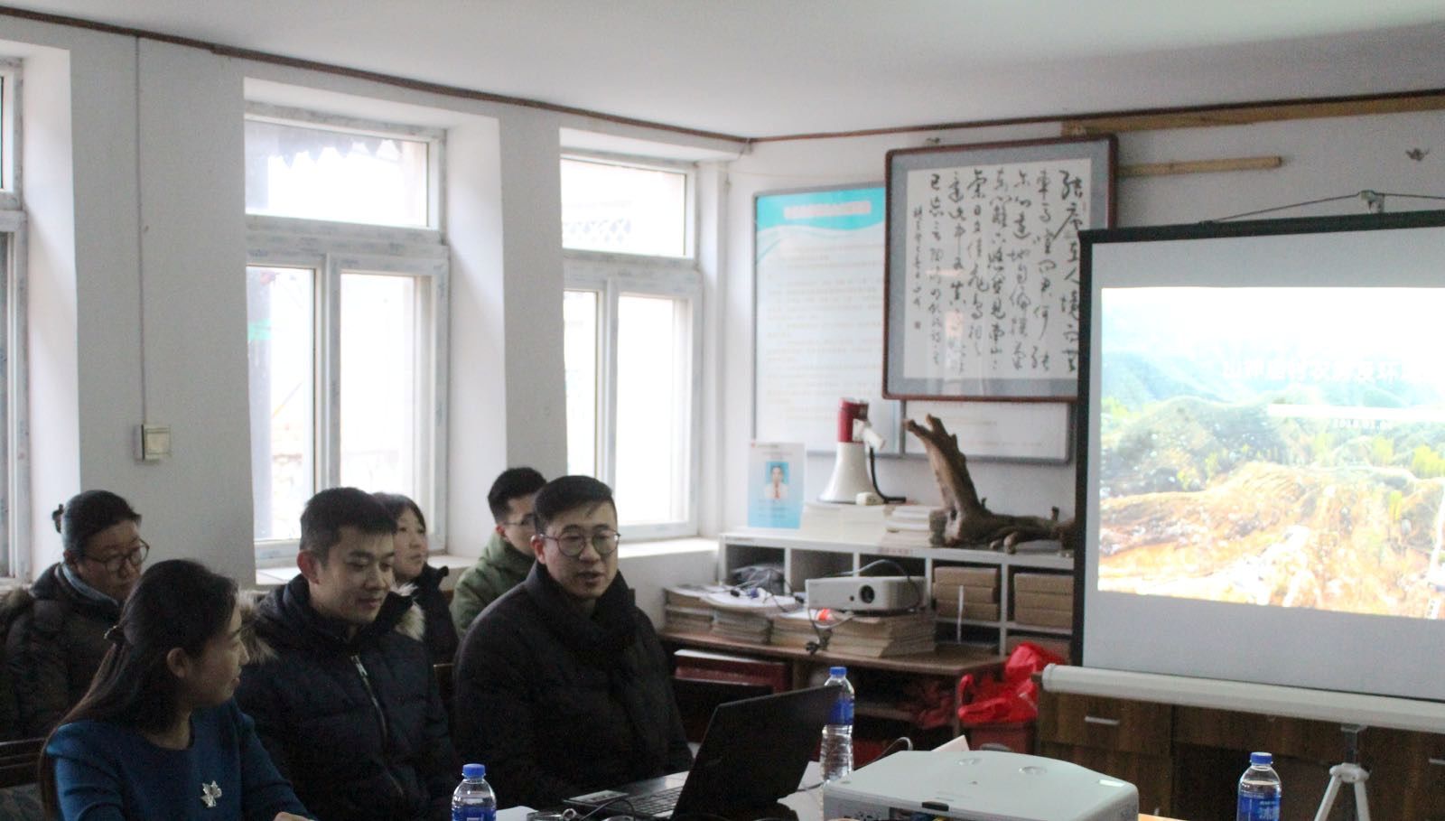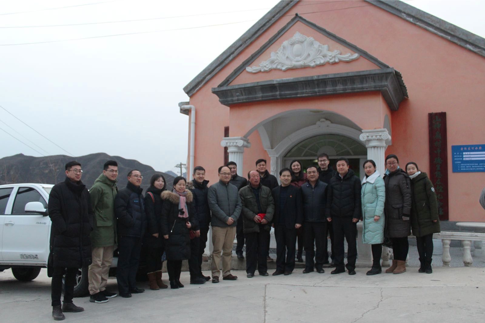 2018年1月4日下午,共青团北京市委员会书记熊卓同志、副书记王洪涛同志、北京工美集团党委副书记甘学荣同志、门头沟雁翅镇党委书记孙东宇同志、团市委各部处负责人及青年代表一行来到门头沟雁翅镇,对球盟会与山神庙村“红色1+1”共建项目进行调研考察。