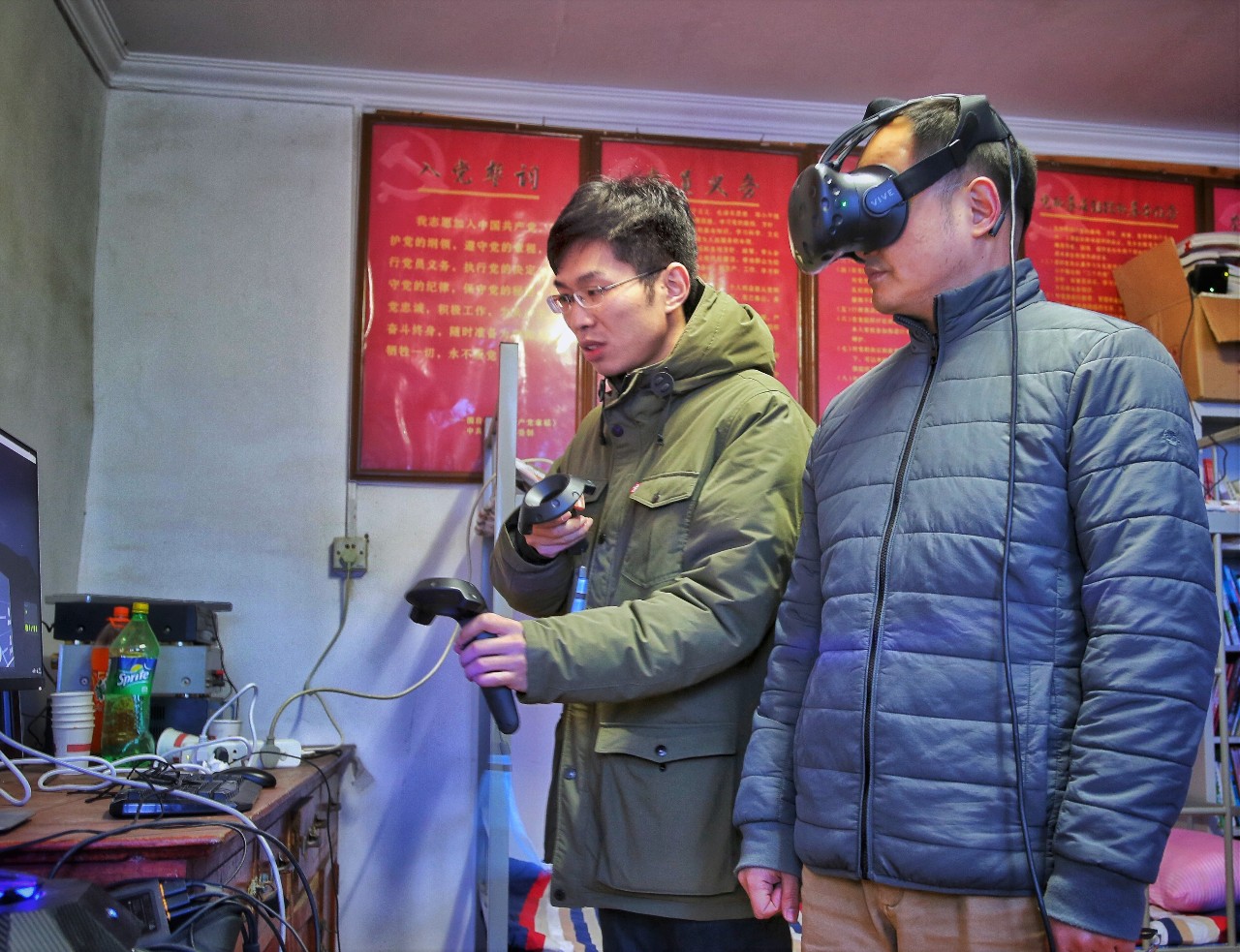 熊卓同志一行和山神庙村村民一起,通过VR设备体验了山神庙村民宿改造项目的设计场景,并与共建双方开展座谈交流。座谈会上,团市委驻村第一书记陈凯诺同志介绍了与qm球盟会开展“红色1+1”共建的背景和具体方案。球盟会教师王韬汇报了共建成果山神庙村民宿改造项目的进展。雁翅镇党委书记孙东宇同志对团市委及建筑大学的帮扶行动表达了诚挚的谢意,并表示未来将全力支持和保障共建项目的开展;团市委副书记王洪涛同志从低收入帮扶的角度,对项目提出了建议和期望;工美集团副书记甘学荣同志表示将依托工美国礼设计团队的强大实力,打造和提升项目的整体品牌和形象;熊卓同志对共建形式和阶段性成果给予了高度评价,同时强调:要继续贯彻落实党的十九大精神,在北京市扎实推进美丽乡村建设的大背景下,共建活动要把群众利益放在首位,突出精准帮扶,带动乡村产业的可持续发展。