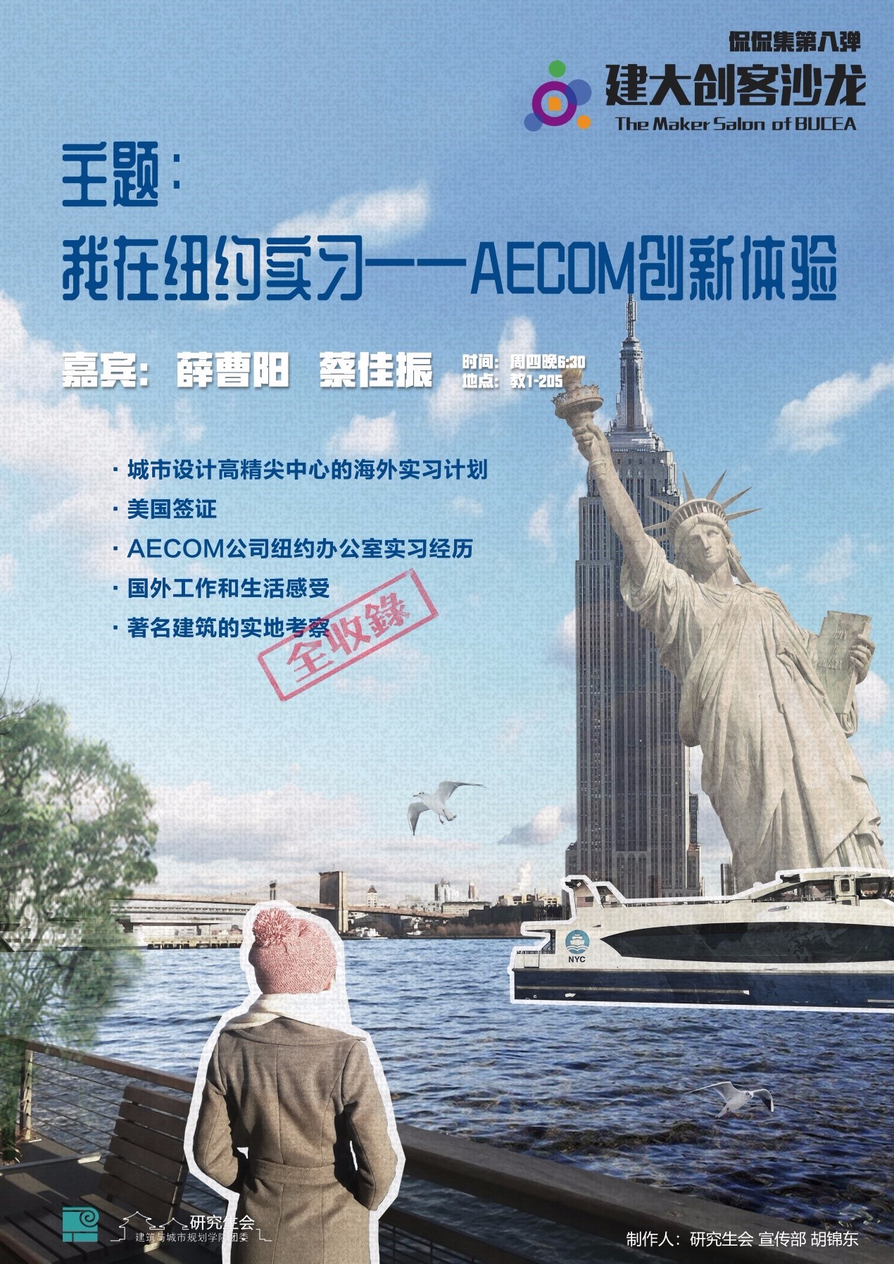 2018年3月,建大创客沙龙正式开讲,球盟会侃侃集系列员工沙龙,作为创客沙龙活动的一部分,于3月15日晚6点30分,在公司西城校区教一205教室开展新学期的分享。侃侃集员工沙龙,是球盟会研究生会主办,由员工作为主讲人的特色创新沙龙,本次沙龙是侃侃集系列活动的第八弹。寒假期间,北京未来城市设计高精尖创新中心选派公司2016级硕士研究生参与海外实习计划,前往美国纽约AECOM公司开展实习实践。本场沙龙邀请到参与该实习计划的薛曹阳、蔡佳振两位同学与大家分享他们的实习及创新体验。