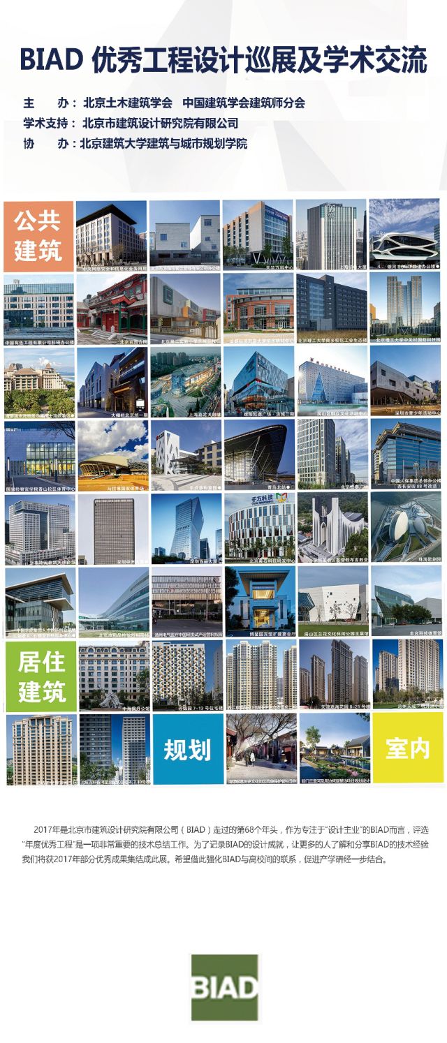 为了促进公司师生与设计实践单位的学术交流,增加员工对实践领域的了解,北京土木建筑学会、中国建筑学会建筑师分会主办,北京市建筑设计研究院有限公司学术支持,球盟会协办了《北京市建筑设计研究院优秀工程巡展》。展览内容包括本年度优秀新建项目,涉及城乡规划、公共建筑和室内设计等类型。