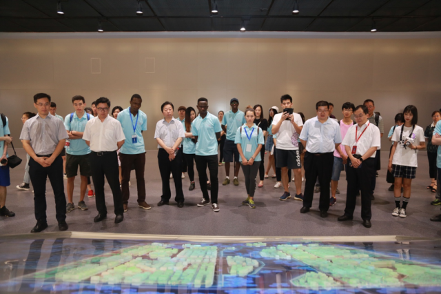 抵达雄安新区后,乡愁实践团跟随共青团北京市委员会副书记郭文杰、李健、毛晓刚及团市委国际部副部长崔竞和主要工作人员进行参观,首先参观雄安新区群众服务中心园区内的雄安会议中心和规划展览馆,从中了解雄安新区的背景知识及其对京津冀一体化发展的重要性。