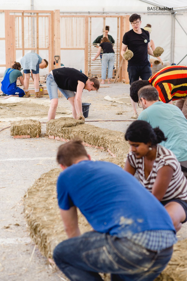 奥地利BASEhabitat中心是联合国教科文组织“生土建筑、文化与可持续发展”教席,在生土建筑实践与可持续建造方面具有长期深厚的研究和实践基础。本次工作营为期两周,共有来自世界各国86名职业建筑师、工程师、建筑学及相关专业教师以及员工参加,开展关于传统建造材料生土与竹在可持续建造方面理论与实践方法的学术交流,通过实地建造与座谈研讨相结合的方式探讨传统材料在当下应用的可能行,并最终形成了丰硕的实践成果。