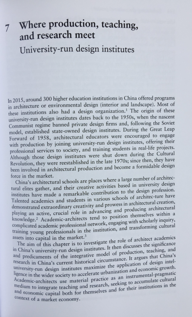 在中国建筑创作逐渐繁荣、多元发展的背景下,该书通过审视国有设计院的实践,试图重新评估它们在社会主义现代化建设过程中所发挥的独特作用以及当下面临的严峻挑战。本书是丁光辉老师在Routledge出版的第二本英文著作。2016年,他的学术专著Constructing a Place of Critical Architecture in China同样由该出版社出版,讨论了建筑学术期刊对繁荣建筑创作的贡献。