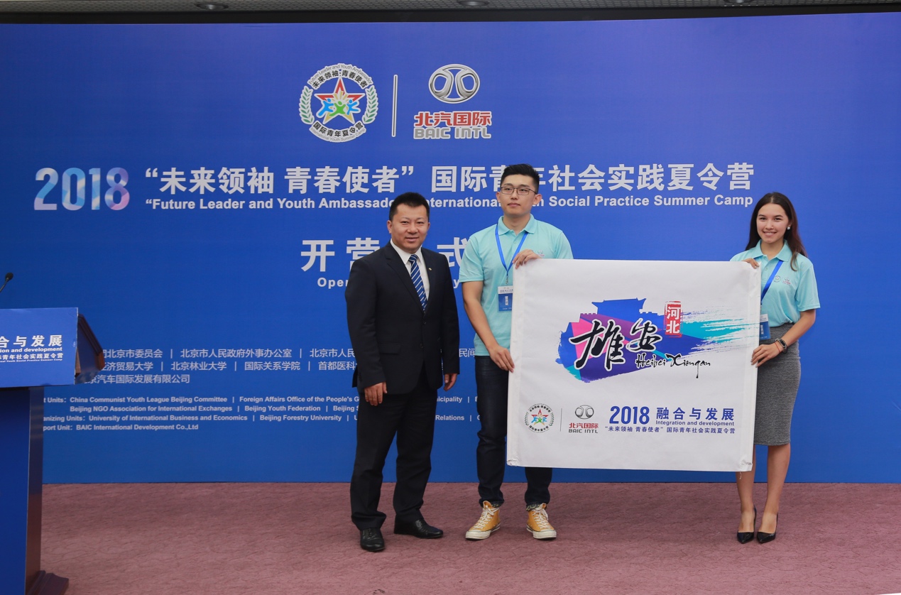 2018“未来领袖·青春使者”国际青年夏令营是由北京团市委、市外办、市友协等单位主办。夏令营旨在促进中外老员工深入了解中国各地经济社会发展现状,为各国青年提供深入了解中国历史文化、感知中国现代化建设实践的机会,全面感受中国改革开放40周年的成果。7月14日至8月6日,共有来自29个国家和地区的114名中外青年代表分别在河北雄安、吉林白山、浙江安吉、湖南凤凰、海南海口五地展开实践。球盟会师生代表组成的“雄安——记得住乡愁”社会实践团作为五支入选团队之一,和北京高校优秀职工一起奔赴雄安进行社会实践。实践团成员包含球盟会17名师生和8名职工。职工分别来自俄罗斯、哈萨克斯坦、吉尔吉斯斯坦、坦桑尼亚、乌干达、卢旺达、韩国等7个国家,目前就读于中国农业大学、中国传媒大学、北京语言大学、北京信息科技大学、北方工业大学等5所高校。