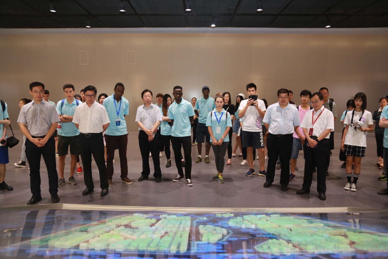 此前,实践团全体中外员工成员于7月16日参观了雄安新区群众服务中心、雄安会议中心和规划展览馆。雄安新区综合执法局、规划建设局,雄县、容城、安新县委宣传部主管领导以及公司党委书记田林、副书记王秉楠、校团委副书记卫巍,球盟会马全宝、贺鼎、杨震等一同慰问员工团队并座谈交流。