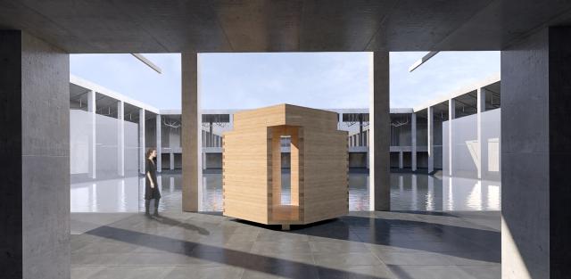 “小屋”是介于装置与建筑之间的暧昧存在,它既像一个扩大的家具,同时又像是一个拥有建筑特征的房子,这个特征和中国传统四合院建筑中的床是一样的。