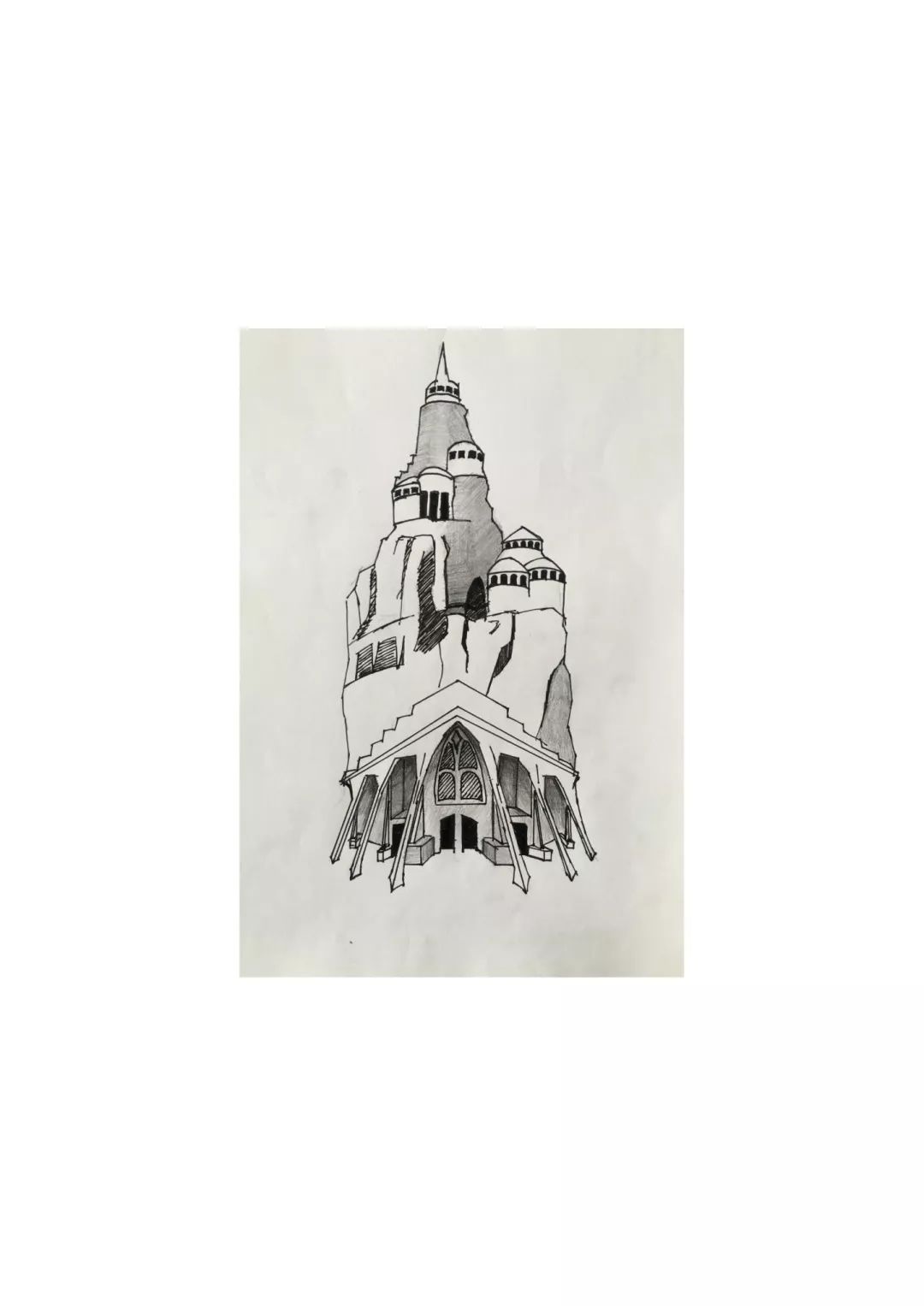 雪雕,主要就是将雪当作塑形材料,把它捏成固定的形状。所以在操作手法上可以借鉴建筑某些手法。本次设计,以通天塔为原型,通过对局部的塑造突出了其神秘的特性。设计中的许多元素参考中世纪教堂等建筑语言,有中西结合的美。