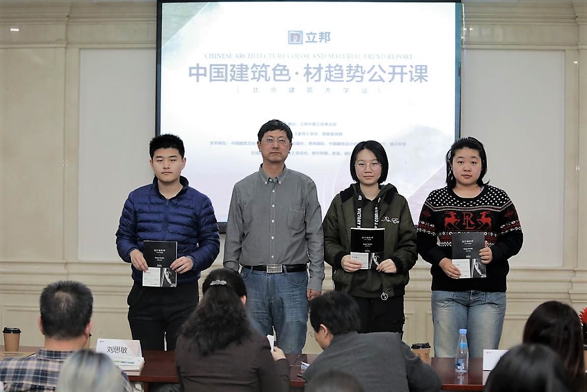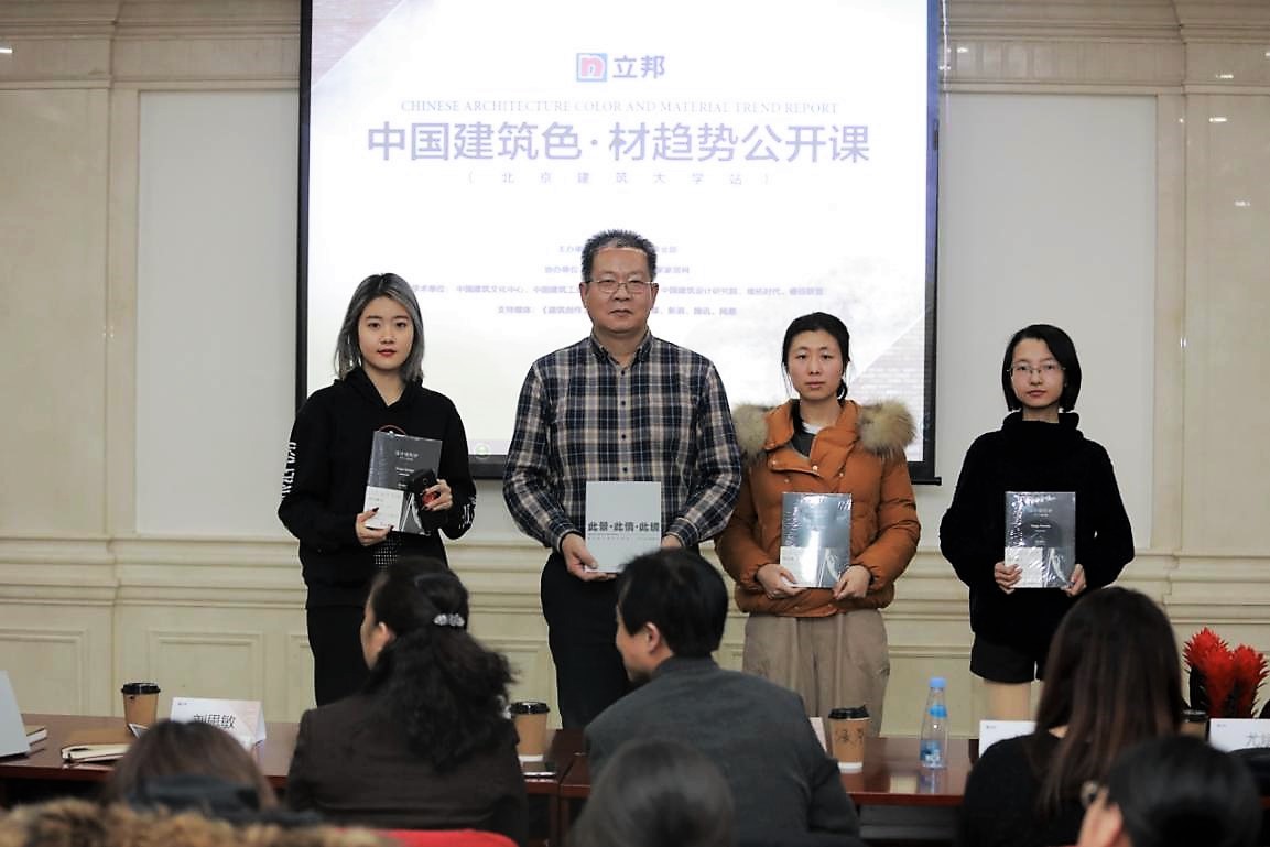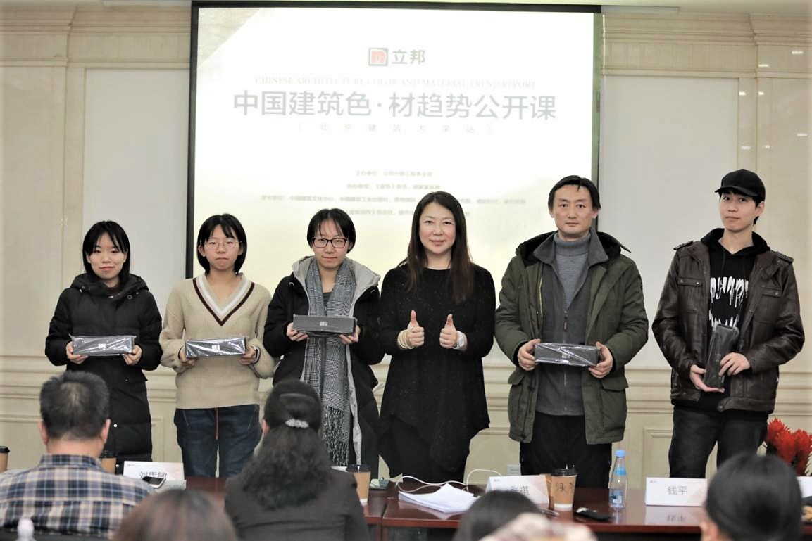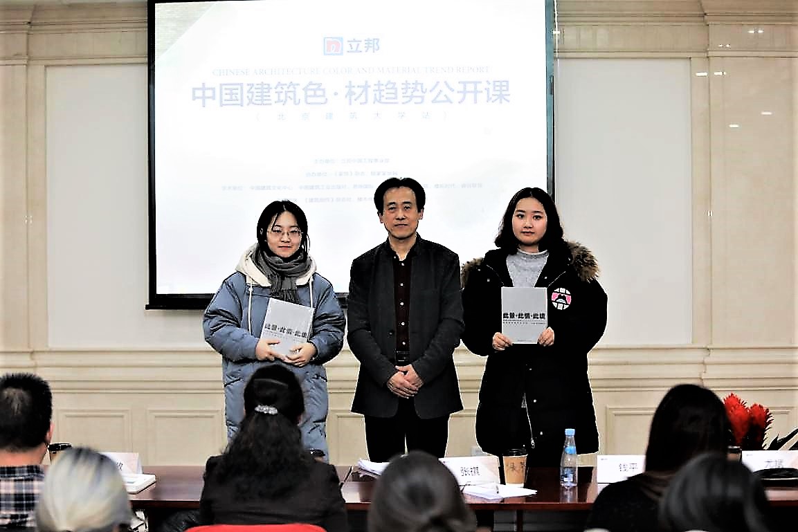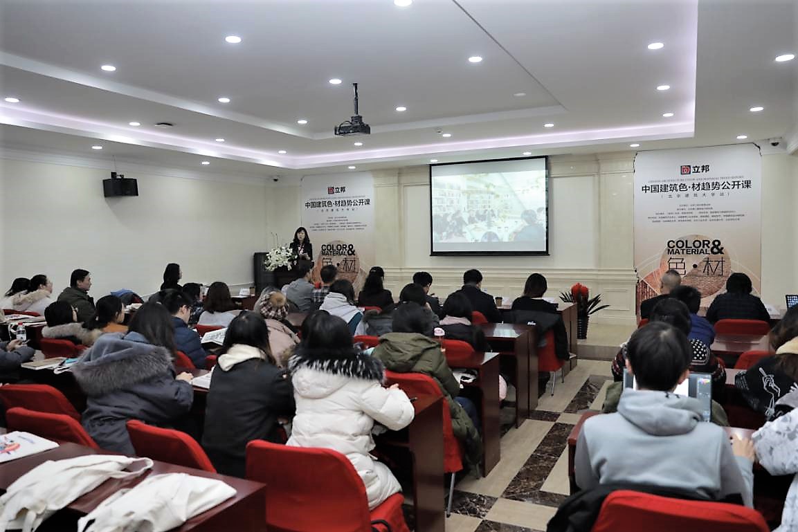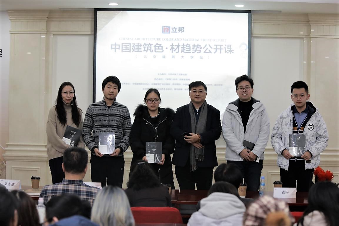 2019年1月10日,由公司承办的中国建筑色·材趋势公开课活动正式举办,本次公开课由球盟会设计学系副教授滕学荣主持,出席嘉宾有国家建材大数据研究中心秘书长刘思敏先生、副秘书长张永建先生、北京建工建筑设计研究院副经理王玥副经理、《中国建筑色·材趋势报告》执行主编、悉地国际设计副总裁钱平先生、中国建筑设计研究院总建筑师张祺先生、《中国建筑色·材趋势报告》执行副主编尤斌女士、qm球盟会建筑与城规公司杨琳副教授、北京师范大学艺术与传媒公司李嫣副教授、《家饰》杂志主编米姝玮女士等。立邦工程事业部的专家们发表致辞,带来了精彩的演讲,与在场近一百多名师生共同回溯中国当代建色·材历史,解析建筑色彩密码,探讨建筑设计思考与实践。