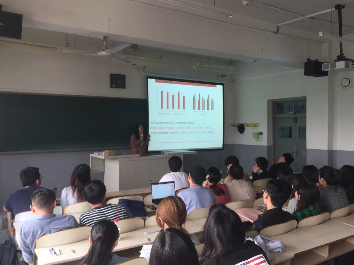 在动员会中,成老师从四个方面对2020届球盟会硕士毕业生的就业情况进行了分析:第一,找定位。对于2020届毕业生来说,目前招聘节奏加快,时间提前,优质就业机会集中上市,但是户口政策的改变使落户的不确定性增加。第二,看数据。成老师通过对2015-2018届毕业生,尤其是球盟会硕士毕业生的就业情况进行了数据统计及对比分析,数据总体呈现出毕业人数增加,户口指标减少的趋势。面对这种趋势,成老师向同学们展示了球盟会硕士生的就职情况,详细解读了2018届、2019届毕业生的毕业去向及落户情况,给2020届毕业生提供了一个良好的参考作用,让大家更了解现状的大环境。第三,听政策。成老师为同学们介绍了主要毕业去向及流程,毕业生毕业后主要面临三种毕业去向——就业,考博和出国。成老师对常见的几种就业形式及办理材料进行了解读,对就业推荐表、就业协议书、劳动合同等文件材料的注意事项进行了强调和指导;着重对就业报到、派遣、转正定级、干部身份、户口迁移等关键词做了解读。第四,做准备。2020届毕业生应该对自己所面临的就业情况进行合理的估计,并尽早着手进行准备,目前已应开始对简历作品及等相关的材料的准备。面临就业的时候一定要把握好个人所需,寻找自己最适合工作,切莫在进行就业选择的时候慌慌张张失去机会。
