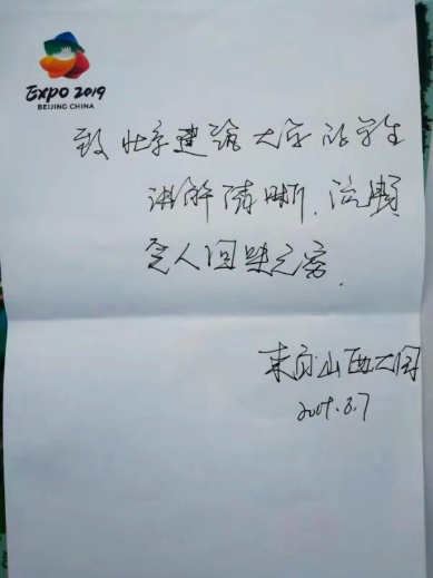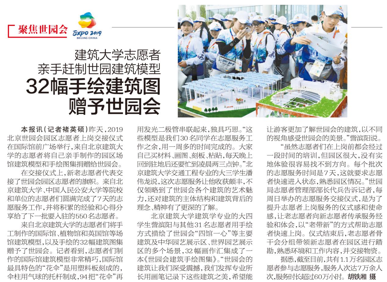 在志愿工作之余,公司同学们结合自身专业,用手绘的方式记录了世园会中国馆、国际馆、植物馆、生活体验馆、妫?I剧场等主要建筑及中华园艺展示区、世界园艺展示区内多个场馆,共计32幅作品,最终以《世园会建筑手绘图集》的形式敬赠世园。