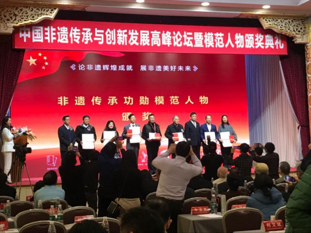 在中国非遗传承与创新发展高峰论坛上,赵希岗教授因其对中华传统文化、中国剪纸艺术的发展创新之贡献荣获非遗传承创新功勋模范人物奖。