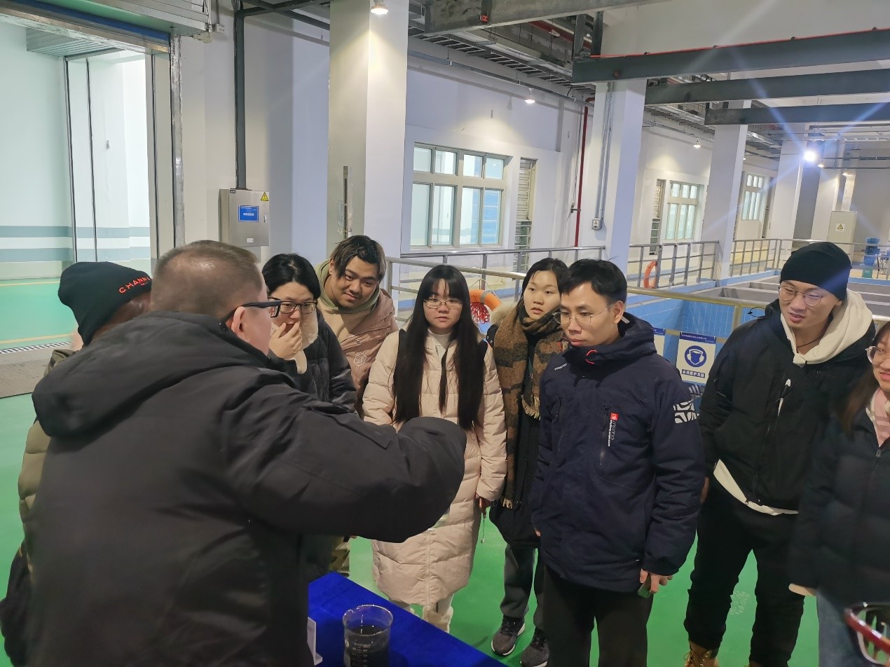 上午9:30,碧水水厂汤厂长带领公司师生首先参观了污水处理厂的出水口,讲解了污水经过处理后的水体水质、排放和用途。此后,我们进入了13m深的地下污水处理厂参观污水处理的具体步骤。污水处理厂采用三级AO+二沉池+高效沉淀池+超滤膜池等多级污水处理系统,能达到日处理污水18万吨的净水量。