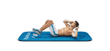 动作过程:起身时下背部用力贴紧地面,挤压腹肌,在最高点稍作停留后还原,双腿处于放松状态。
