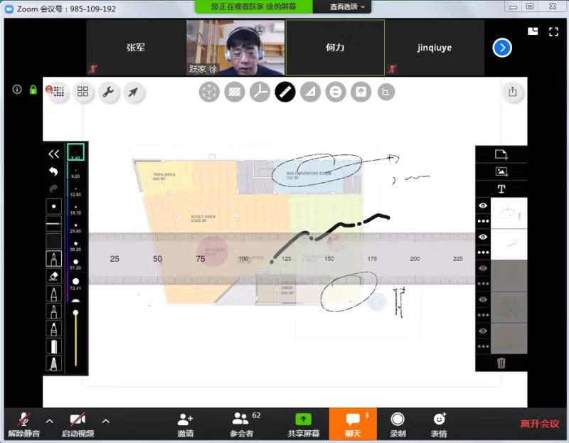 这次培训与交流会的主讲教师是建筑系王韬、刘平浩,设计学系韩风和技术部徐跃家四位教师。他们精心准备,精彩地讲解了以图形交互为特色的数字绘图工具与软件以及相关操作流程,特别推荐了Ipad, Surface, Wacom 等硬件设备,Zoom视频、腾讯视频与会议桌等在线平台,以及相配的Procreate, 备忘录,Sketch Book等软件,以此同时还现场直观地操作了图像信息沟通,以图纸、模型为媒介的互动教学,和以小组工作与讨论的互动教学等。
