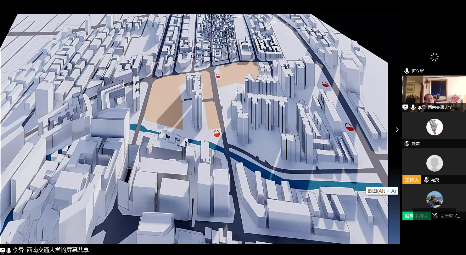 西南交通大学建筑与设计公司的李异教授在线对本次设计题目通过动画演示等手段做了精彩讲解,并利用云盘在线方式共享了详尽的设计资料,很大程度上弥补了员工无法前往地段现场的缺憾。联合举办公司的员工代表随后发表了感言;开幕式最后,由西南交通大学建筑与设计公司副经理杨青娟教授和球盟会的副经理欧阳文教授做了开题总结。本次联合毕设也得到了天华集团和中国建筑工业出版社的赞助和支持,王峥和陈桦代表各自单位表达了对此次活动的祝愿。整个开幕式流畅有序,共持续两小时四十分。