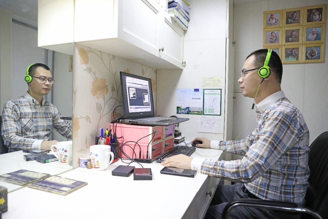 杨振老师在家中上网课场景