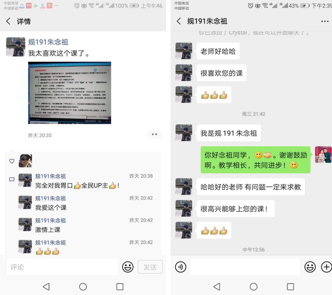 规191朱念祖同学上课后的感受和评价