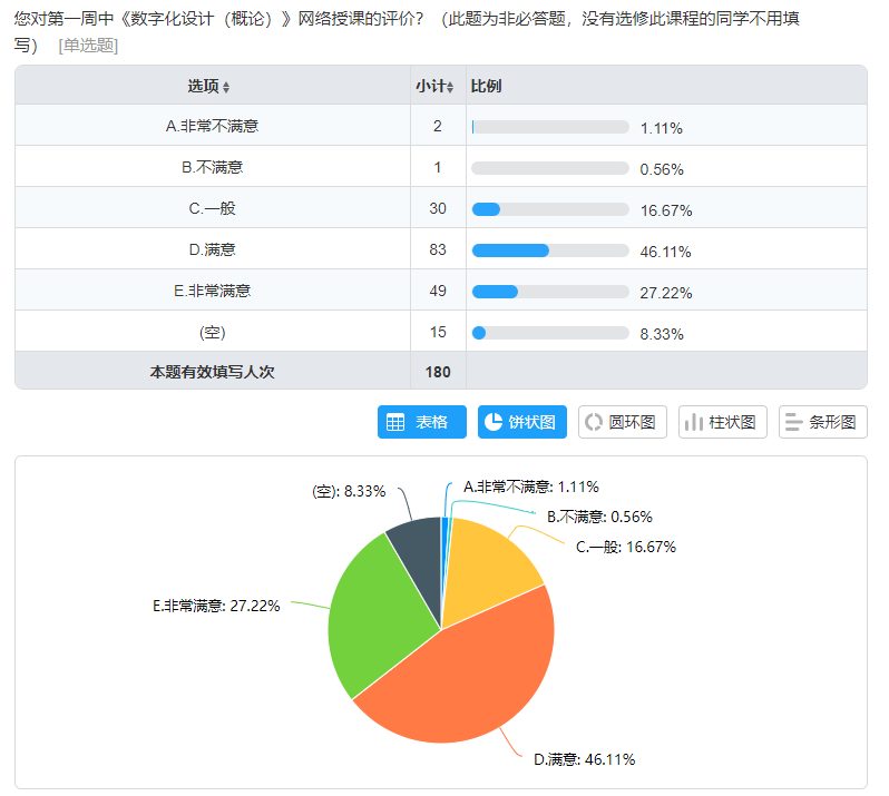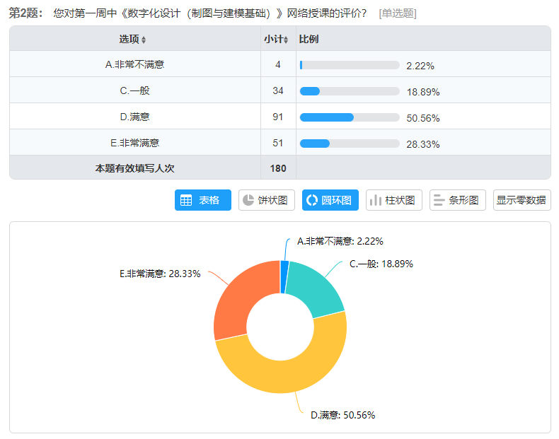 《数字化设计(制图与建模基础)》第一周课程满意度调查结果