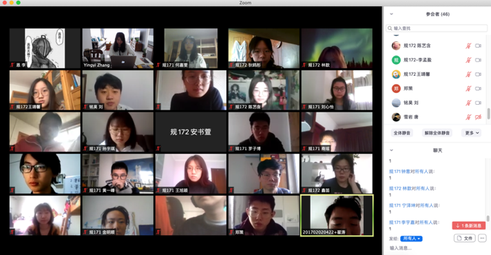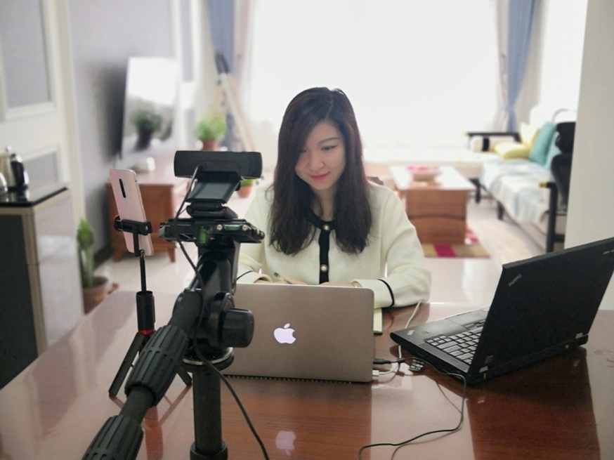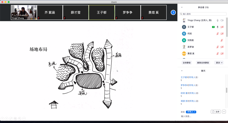 在线授课平台和工具为课程开展提供了新的可能性。自媒体迅猛发展的时代,每个人都可以成为“up主”,青年员工对“直播授课”的接受度较高。经过开学以来的实践和完善,张颖异老师目前上课的装备有这么几种:一台MacBook,作为主要授课工具,利用Zoom会议中自带的视频、投屏、聊天、注释等功能进行教学;另准备一台联想笔记本备用,一是防止出现器材临时故障,二是方便在部分教学环节中使用雨课堂(仅适配Win系统);一个罗技摄像头,兼具摄像收音功能,搭配三脚架使用,画质相对稳定清晰,视野更宽,收音效果更佳;一部手机,搭配轻便三脚架,方便直播手绘改图过程,不用一只手一直举着手机,不好操作,也方便随时看到员工在微信群中的反馈。这种实时互动的教学新“姿势”似乎也可以延续到复学以后,作为日常课堂教学的补充。当员工遇到共性问题或需要参加课外辅导时,可通过远程视频及时“安排上”,提高教学灵活性。相信疫情会很快被战胜,相信传统课堂会焕发出新的生命力。