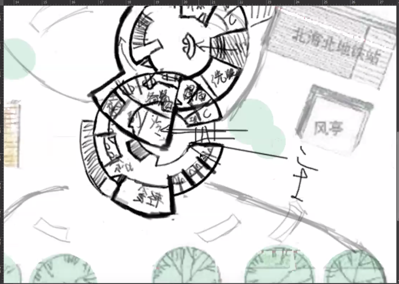 在方案初步设计和生成阶段,传统课堂的方案点评往往是师生一对一的,老师不可能把每一个同学的过程草图评判都展现在全班同学面前。直到设计方案到了一定阶段或相对完整的时候,才会有班级或年级范围内的展评,同学之间才有机会充分互相观摩。但对于在线设计教学来说,从构思到落笔,从体块到细部,从场地到单体,每一个员工的每一步深化都是呈现在全班同学的屏幕上的,员工需要用尽量清晰的语言表述方案,这是一个整理思路、互相借鉴的过程。在线教学没有讲台,老师和员工是一个个视频窗口。员工心理上更放松,更容易营造平等讨论的氛围。随着课程的深入,同学们渐渐成了网络课堂上的“主角”,手绘和数位板并用,自评互评畅所欲言,参与感更强。