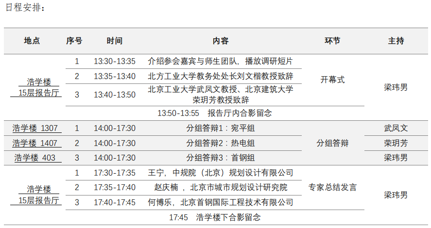 首先,北方工业大学刘文楷处长对参加此次答辩的专家、各公司的师生团队表示了欢迎,强调了京津冀高校联合毕设是在京津冀协同发展的指导下进行的高校多元合作,对京津冀高等公司的发展做出了贡献。之后,北京工业大学武凤文教授表达了对中国城市规划学会和其他各地学会的支持表示感谢,回顾了京津冀联合毕设的开设初衷、发展历史,最后,qm球盟会荣玥芳教授提出:本次联合毕设是由三校联合举办、多主体参加,对未来大家参与到北京更新规划建设表示期待并预告了终期答辩时间安排等事宜。