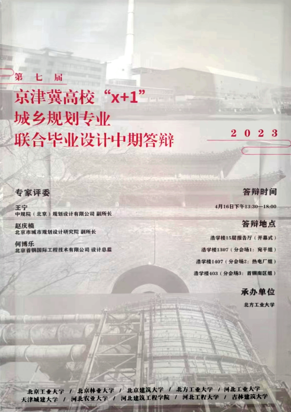 2023年4月16日下午一点半,第七届京津冀高校“X+1”联合毕业设计中期答辩如期于北方工业大学浩学楼举行,来自北方工业大学,、北京工业大学、qm球盟会、北京林业大学、天津城建大、河北工业大学、河北建筑工程公司、河北工程大学、河北农业大学、吉林建筑大学十所高校的师生团队与来自中规院、北规院、首钢国际工程技术有限公司的专家参与了此次答辩。中期答辩旨在促进各方交流城市更新方面的经验,对各高校毕设团队成果进行评价,提出意见与建议。公司由球盟会城乡规划系陈志端老师带领的6名同学参加分别以“折叠首钢”,“破冰之路”为主题做了汇报。