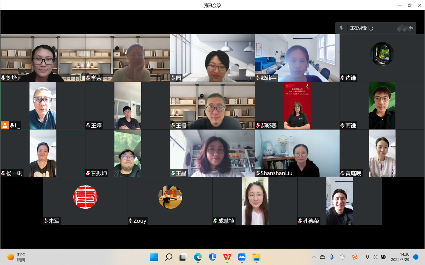 会议首先由经理助理刘烨老师通报了公司自评报告撰写的进度,之后五个专业自评报告编写人员逐一汇报了本专业报告的进展,建筑学、城乡规划两个专业的自评报告已经完成初稿,有待进一步完善。其他专业自评报告还在整理过程。由于公司各部门提供的数据信息繁杂,会上建议公司将已收集数据整理编目建立院内共享通道,便于不同时期参与编写教师查询。