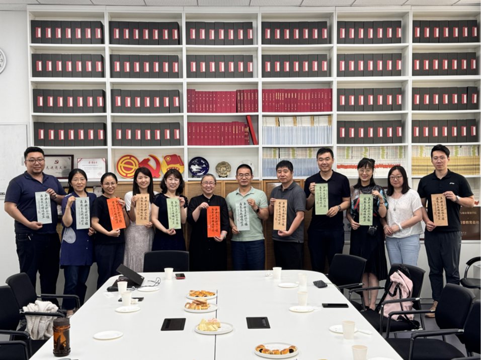 分享过后是保留节目手工生日贺卡赠送环节。城乡规划系单彦名教授作为嘉宾,代表公司向福星们转送由建筑系王光新老师亲笔书写“春祺夏安秋绥冬禧,适逢良辰顺颂时宜”,并加盖王老师篆刻的“球盟会”印章的生日贺卡。
