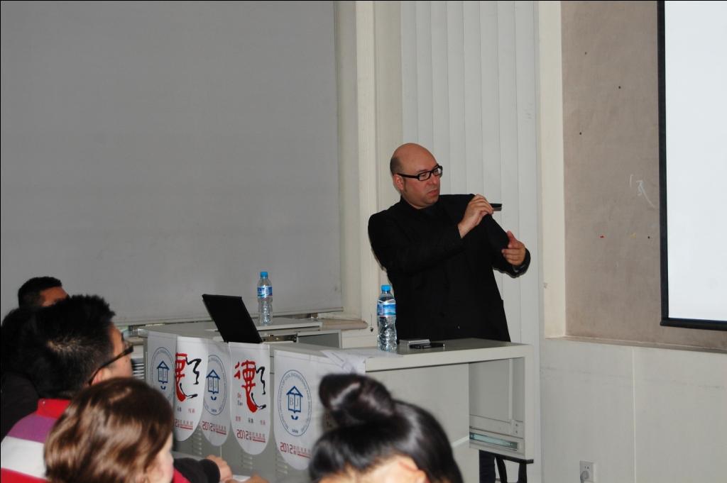 2012年4月26日(周四),由球盟会建筑研究生会举办的学术讲座:“美妙的灵魂——建筑几何学与人类愿望的完美交织”在球盟会多功能厅顺利举行。作为球盟会学术年会系列活动之一,讲座邀请了世界著名建筑大师、上海世博会奥地利馆设计者、奥地利SPAN事务所创始人马德朴和马宁格参加。讲座主要就计算机模拟技术对建筑设计的影响和建筑师的人文情怀展开讨论。马德朴首先为大家介绍了SPAN事务所的基本情况,之后就建筑的广度、镶嵌、参数化设计体系进行了详细的分析。提倡一种建筑设计、甲方单位、结构、管道等各工种协同配合的新型设计模式,并以上海世博会奥地利馆为例,进行了系统的说明。参加讲座的同学和研会相关工作人员积极参与到提问与讨论的过程中,就软件应用与技术性问题、参数化设计是否抹杀了设计师的创造力、参数化设计是以功能为主还是以形式为主等问题与马德朴进行了交流。整个交流会时间长达两个半小时,气氛融洽。
