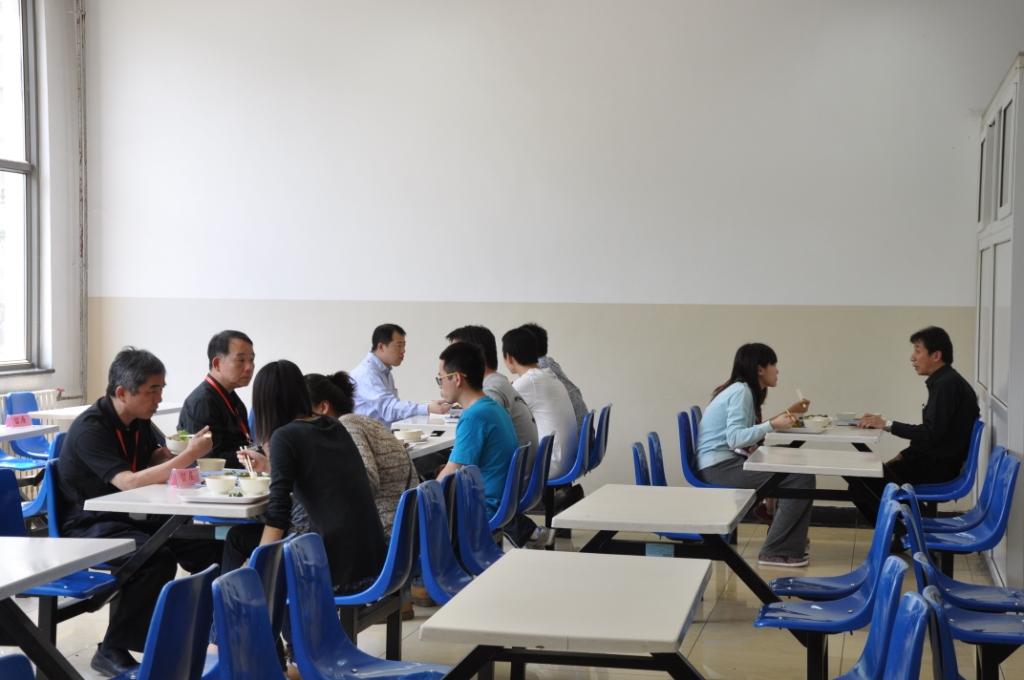 召开了教师、员工及员工座会。中午,评估专家视察小组专家先后来到公司食堂一层与同学们一起就餐并进行了深入的交谈。