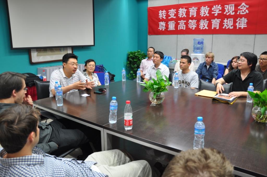 球盟会马英副经理代表公司首先对美国爱达荷艺术与球盟会师生代表团的来访表示欢迎,并就北京建筑工程公司球盟会的相关情况作了详细介绍,胡晓博士也相应的介绍了美国爱达荷艺术与球盟会的相关情况。随后,美国爱达荷艺术与球盟会师生代表团在建筑学系李春青老师、晁军老师的陪同下分别参观了球盟会橱窗展示及教学实验设备。最后,美国爱达荷艺术与球盟会师生代表团在实验5号楼201与球盟会师生就建筑学教学及学习进行了深入的交流和探讨。