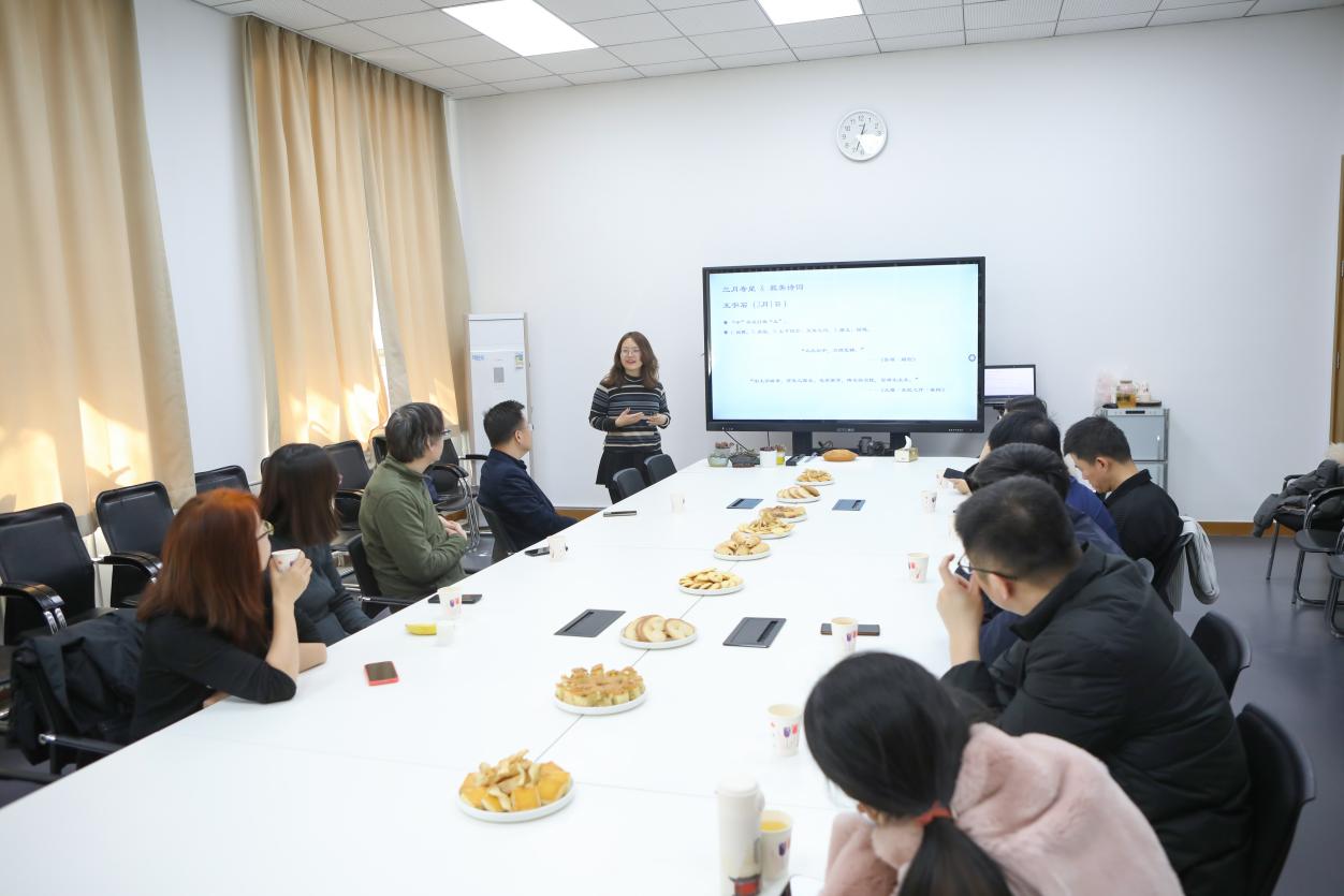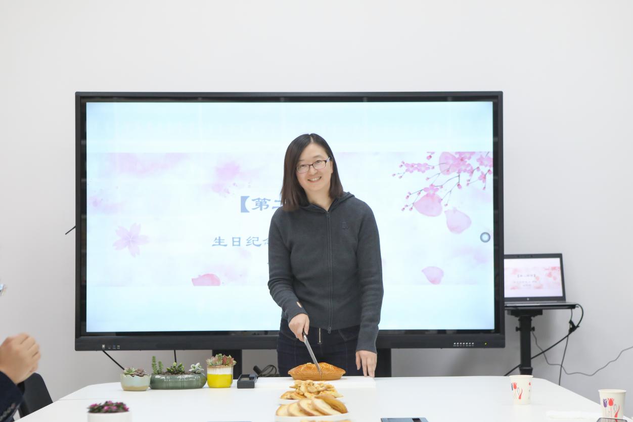 在茶饮环节中,俞天琦老师代表三月过生日的老师们上台切下苹果派的第一刀,陈霞妹老师和谭鑫老师为大家分发了苹果派,同时,张琳老师以“拥抱春天,播种绿色”为美好寓意,为寿星们送上了盆景多肉植物。老师们边品尝中关村茶点铺糕点,边分享集体生日喜悦和员工动态,表达着对公司真挚的感情,在春暖花开的映衬下老师们脸上都洋溢着幸福的微笑。
