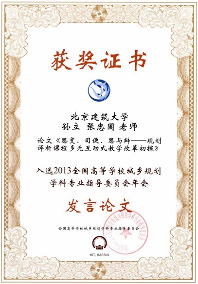 2013年度全国城乡规划学科专业指导委员会年会于9月25日—29日在哈尔滨工业大学隆重举行,来自全国包括港澳台的百余所院校的近四百名教师代表参加了此次盛会。在专指委委员会上,公司专指委委员张忠国教授汇报了所负责的北京片区所办城乡规划专业院校的学科专业建设情况,并应邀交流了由公司牵头从2011年开始主办的全国六校城乡规划联合毕业设计的进展情况。会上,正式发布了《全国高等院校城乡规划本科指导性专业规范》,这本规范对于全国已办城乡规划专业的188所院校和正在申办城乡规划专业的院校来说,具有重要的指导意义,张忠国教授作为编制人员之一参加了专业规范的编制工作。