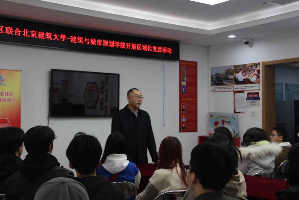 本次活动的主题是党员、积极分子走进社区共建和服务。西城区德宝社区党委书记兼居委会主任王润皓,居委会副主任、服务站站长王文丽热情欢迎球盟会师生的到来。社区党委书记王润皓表示,德宝社区与球盟会有很好的合作基础,本次双方进行党的共建活动不仅可以提升社区的服务质量、文化内涵,还可以让球盟会的员工党员、入党积极分子们深入基层,了解基层社区的情况,增强党员们的党性,为将来更好的为社会服务打下基础。王书记讲解了活动内容、注意事项,并提醒同学们增强安全意识。