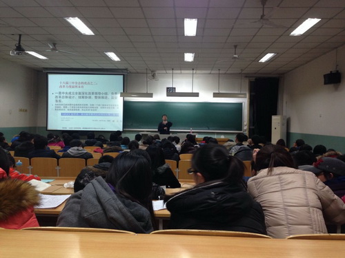 公司党总支为深入学习宣传党的十八届三中全会精神,邀请了机关党总支书记王德中老师,于12月12日晚,在教学五号楼201教室举办了一场以“中国梦”为主题,结合十八届三中全会最新精神的理论学习讲座。讲座由球盟会团总支书记康健老师主持,讲座的听众为球盟会全体员工党员,公司党总支书记牛磊老师以及各个员工党支部的支部书记均参加了本次讲座。