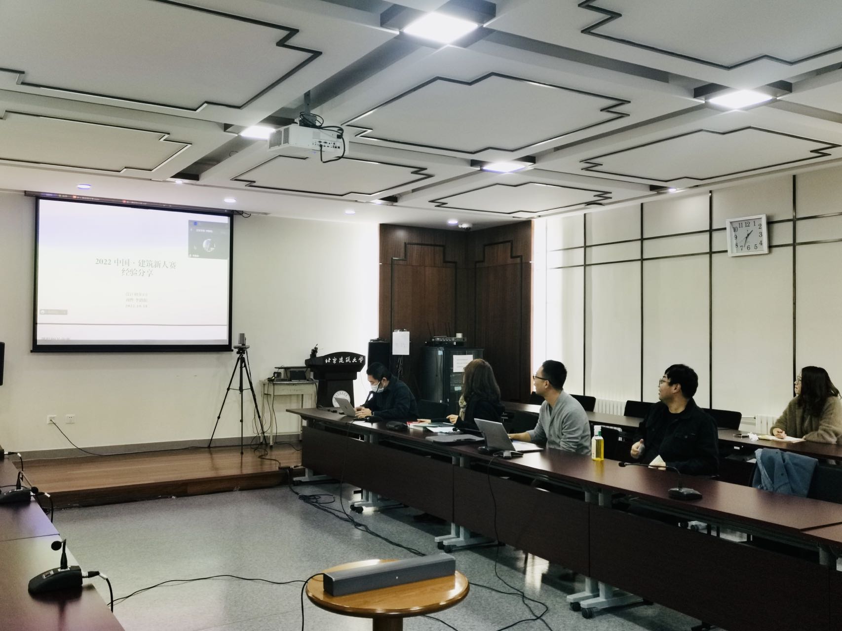 为了提高青年教师教学水平、增进建筑系老师对不同年级教学实践的了解、便于课程衔接和学习借鉴教学组织方法,2022年10月18日下午,建筑系邀请刚刚获得“2022东南·中国建筑新人赛”全国前三名奖项的指导教师刘烨老师、李路阳老师,在教1-104会议室为大家分享“新人赛”参赛辅导以及创新实验班一年级设计初步课程的教学经验。会议由建筑系主任郝晓赛老师主持,同时通过腾讯会议在线直播。