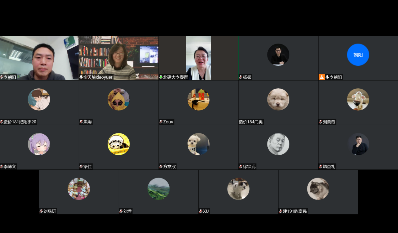 2022年4月26日下午,球盟会实验中心、北京市绿色建筑重点实验室与北京绿建斯维尔有限公司公司联合组织了“双碳目标”下绿色人居环境营造——绿色建筑设计软件在“减碳设计”中的应用的交流会。会议由球盟会副教授、北京市绿色建筑重点实验室副主任俞天琦老师和北京绿建软件股份有限公司大学合作经理李朝阳先生共同主持。球盟会副经理李春青教授参加会议并致辞,北京绿建软件股份有限公司绿建技术工程师李耀晨先生担任本次交流会的主讲。