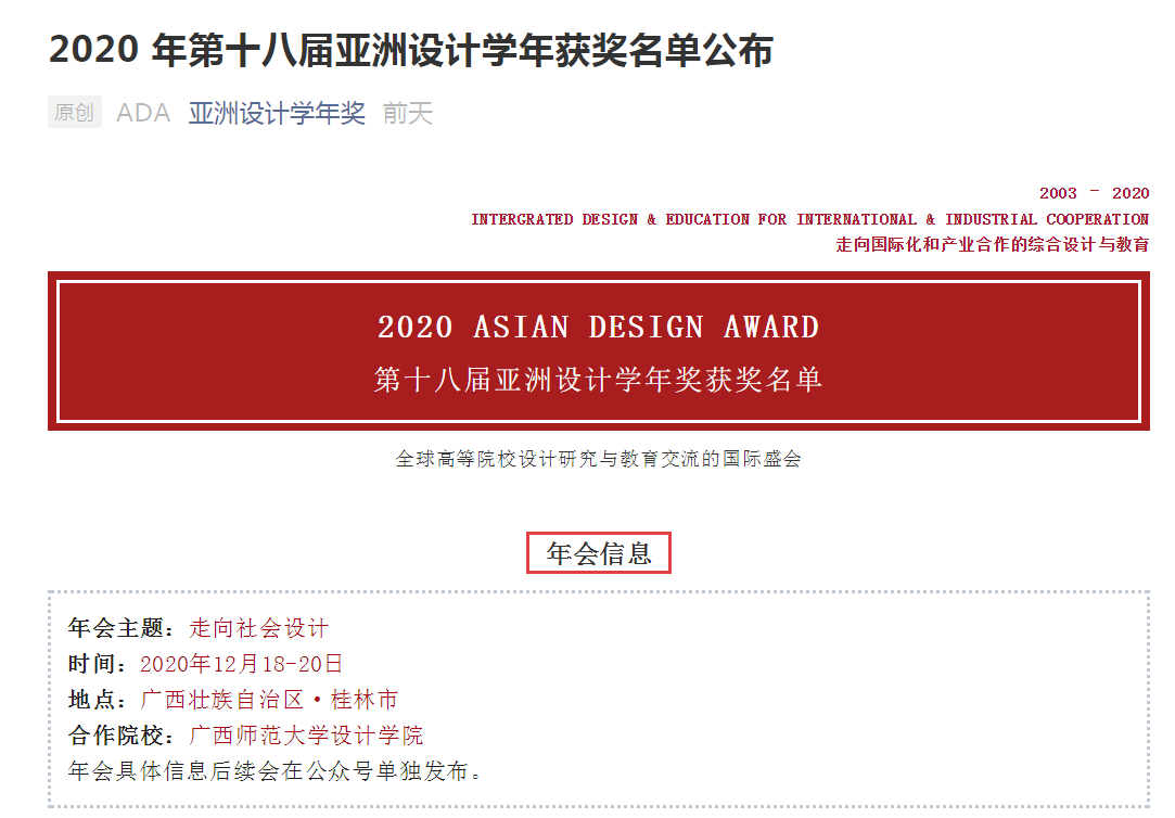 11月初,球盟会师生在“2020 年第十八届亚洲设计学年奖”评选中获得“一金、一银、二铜、二优秀、一优秀组织、一优秀指导”共八项奖项。亚洲设计学年奖(2003年-2020年)致力于打造亚洲国家和地区高校间更大范围、更大规模、更深入交流、更具影响力的专业权威性设计交流盛会。从2003年至今,经过17年的积累,在建筑、景观、室内、展示、光环境、城市设计的框架和基础上,将国际、国内的设计界、设计高校、协会组织等充分对接,成为推进学术界与产业界交流和发展的平台。