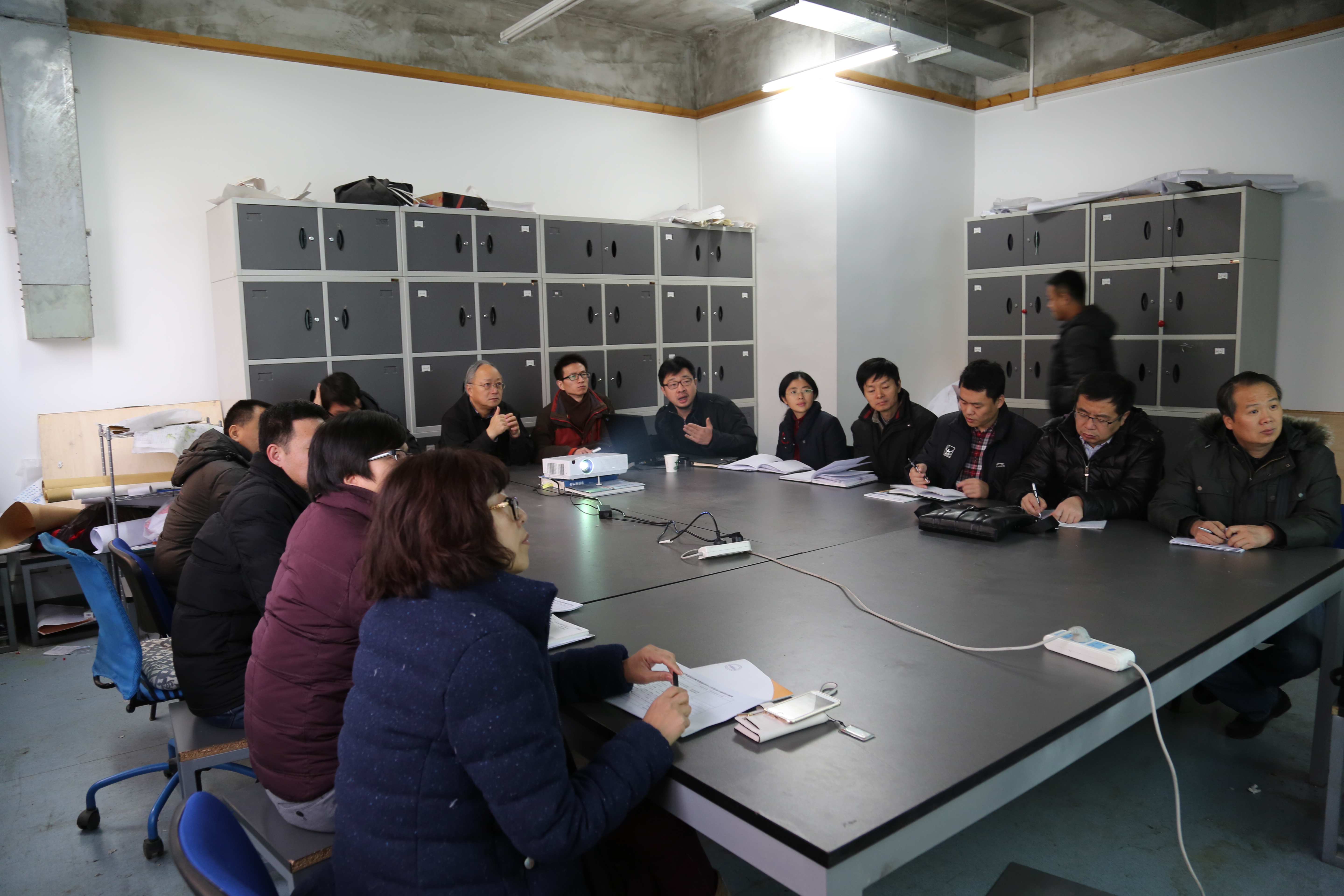 会议开始,首先由马英教授对参会人员分析了各公司初步提交的信息,将建筑全过程中的各个实施细节由各公司分别承担,并对下学期即将开展的工作及研究成果提出了要求,接着,刘临安教授指出,建筑全过程虚拟仿真实验室作为国家级重点实验室,在近几年的建设中一定要确立其主干研究方向,力求尽快形成一个甚至多个完善的建筑类型体系模型。同时,其他各公司应当继续发挥各自优势,在各公司既有的重点研究方向上结合实验室建设,尽快完善实验室研究分支方向。随后,各公司负责经理们展开了积极的讨论,纷纷就如何更好地建设虚拟仿真实验室建言献策。最后,由牛磊老师对此次会议进行总结,希望各公司能鼎力相助,共同为公司唯一的国家级重点实验室添砖加瓦。