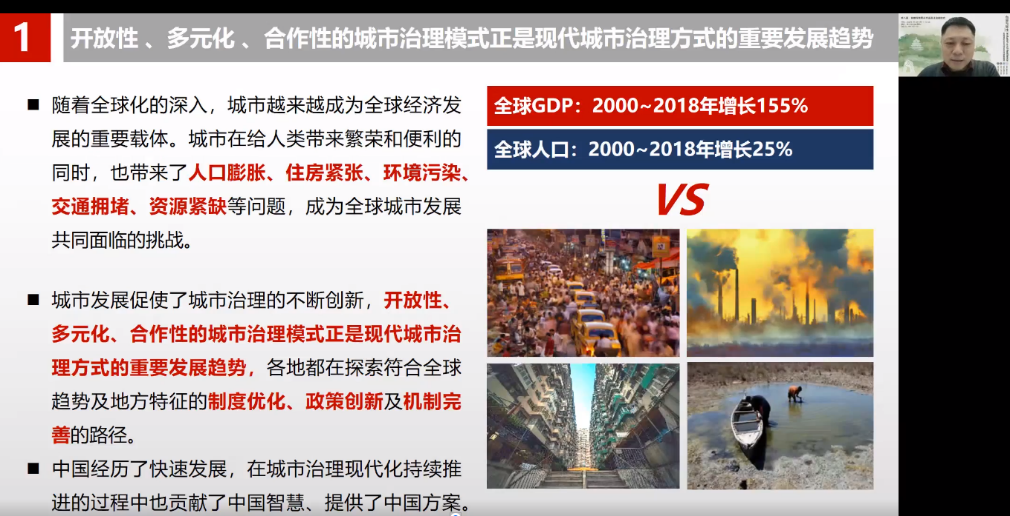 最后,两位专家学者带来精彩的学术讲座。首先,来自北京市城市规划设计研究院城市更新规划所所长,城市更新研究中心副主任,北京工程勘察设计协会城市更新分会副会长,王崇烈正高级工程师,带来了“北京城市更新的规划、政策与实践”专题讲座。王崇烈所长在城市更新建设中积累了丰富的实践经验,他从宏观到微观,自上而下地为在线师生讲解了当下北京城市更新的一些关键点,包括优化“都”与“城”、配套“财、税、金”、释放 “能、量、权”、以及协同“民、企、政”,体现着政策的包容度与韧性城市理念,并指出这些复杂机制下一步努力方式是进一步深化沟通、获得有效的结论。