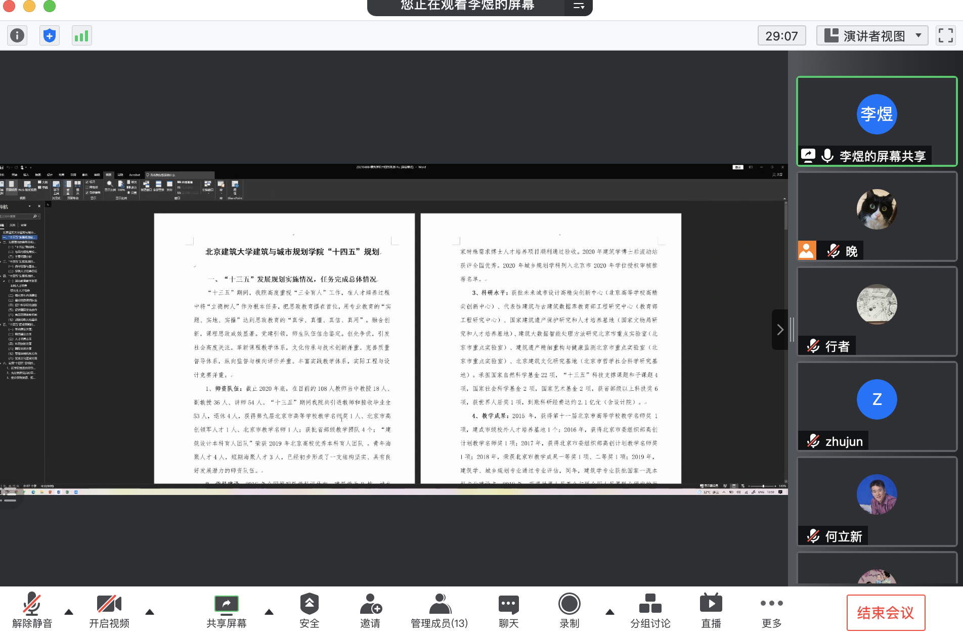 经理张杰提出,公司十四五规划已形成较为完善的整体框架,下一阶段需继续与公司十四五规划报告进行仔细对标,分解任务,梳理完善报告内容。党委书记何立新针对教学环境改善、教学与科研能力提升、员工思想政治教育、青年教师培养、结合专业与师生特点的党建美育品牌、交叉学科突破、学科专业建设与改革等内容提出意见建议,与会教师针对报告内容展开充分讨论。