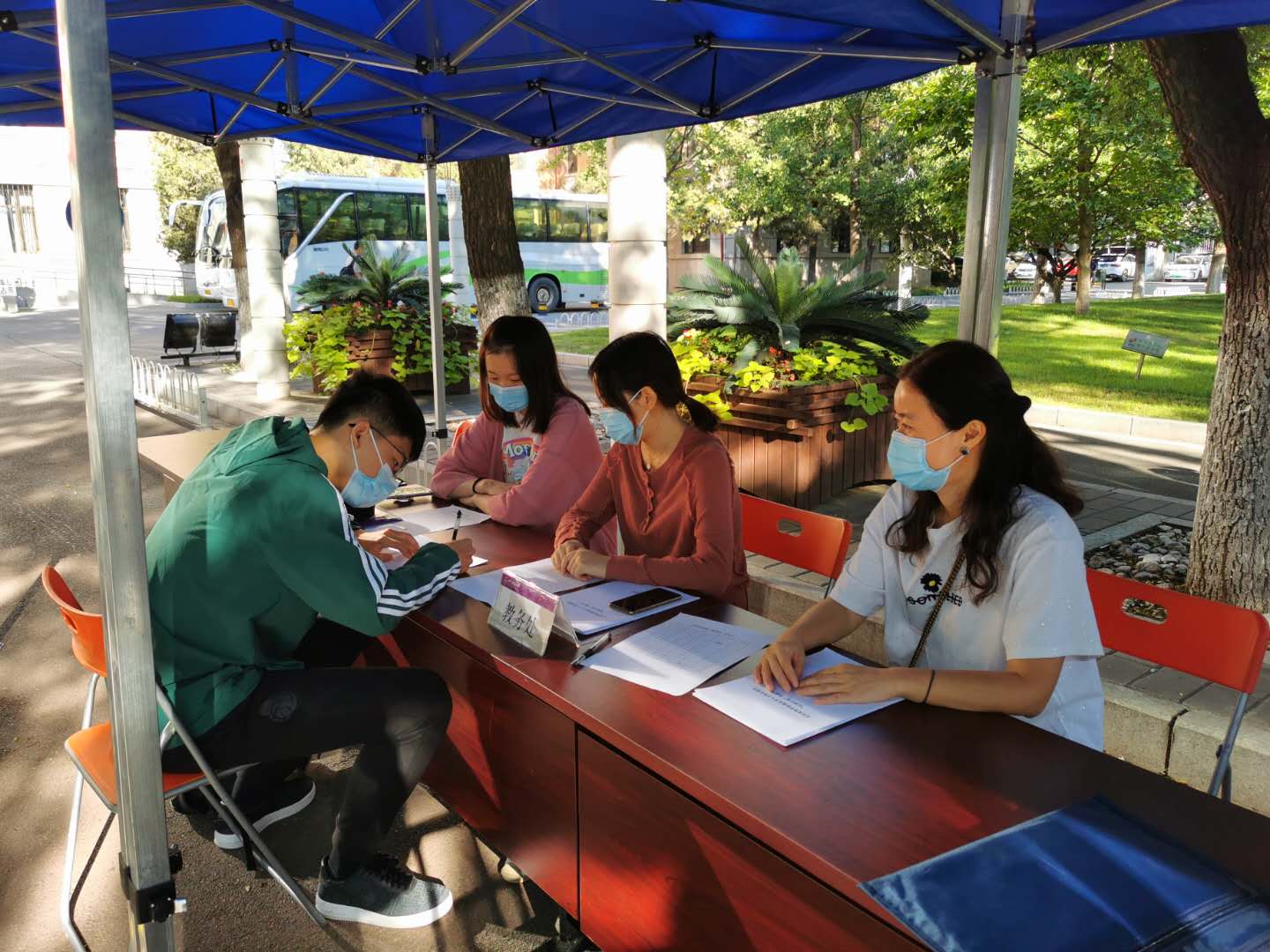9月18日上午8:30,一个阳光灿烂的日子,北建大球盟会迎来了2020级风景园林专业8名双培新生。风景园林系双培计划负责人张振威,公司教务办公室刘志刚、公司学工办公室吴昕泽、孙萌3位老师以及公司教务处老师在西城校区教1楼前给新生办理入学手续。