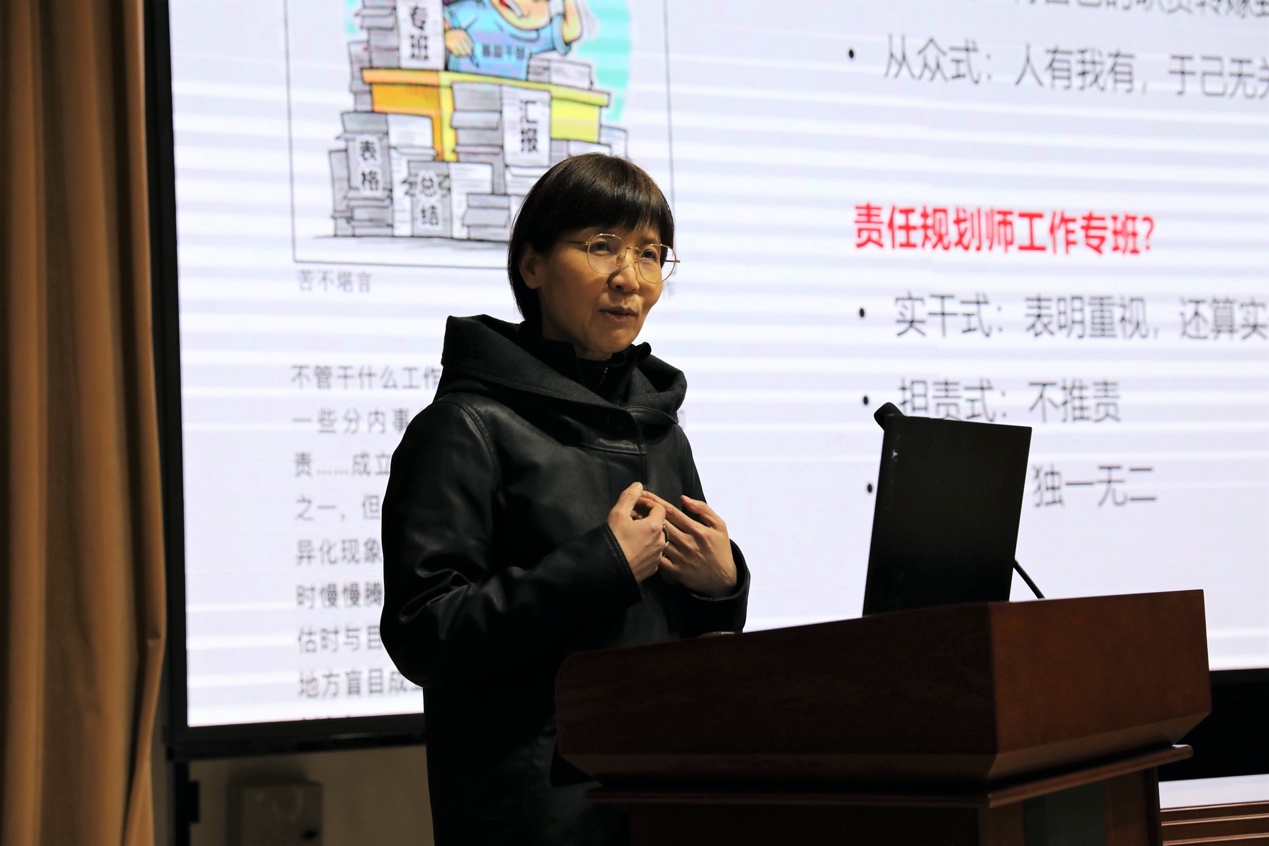 北京市城市规划设计研究院名城保护中心顾问冯斐菲教授,通过学术交流的形式提出对责任规划师工作专班的工作总结与思考。包括责师专班的组织架构、责任规划师的自我定位、各部门存在的主要问题,以及责师专班工作重点等内容。冯教授提出,2021年责师专班将进一步加强与街乡镇相关部门的对接、加强与分局的对接、增加专报专送、建立专家资源库、助力责任规划师项目落地等重点工作内容。